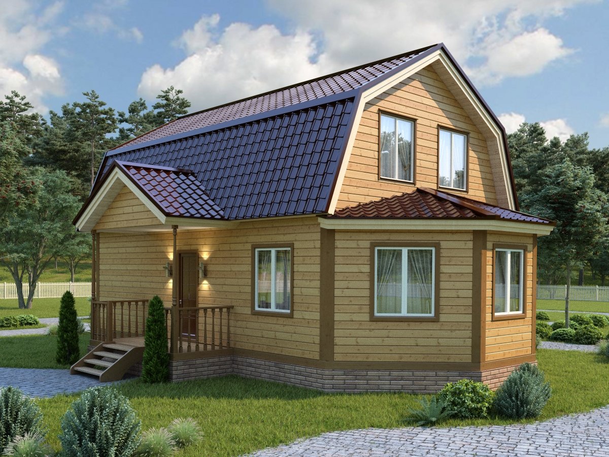 Деревянный дом с ломаной крышей