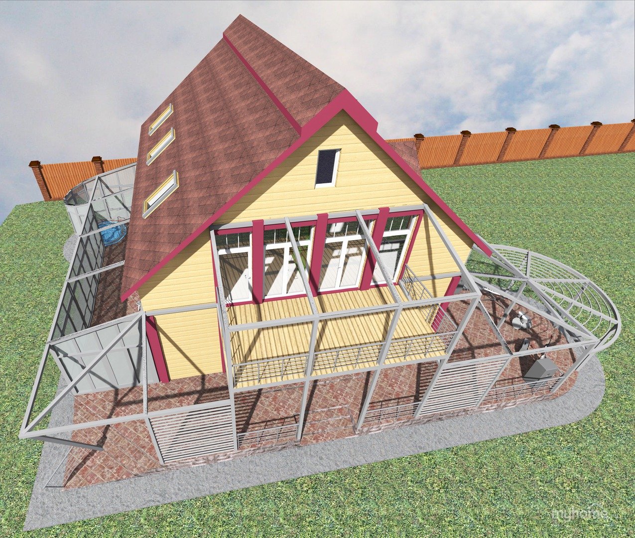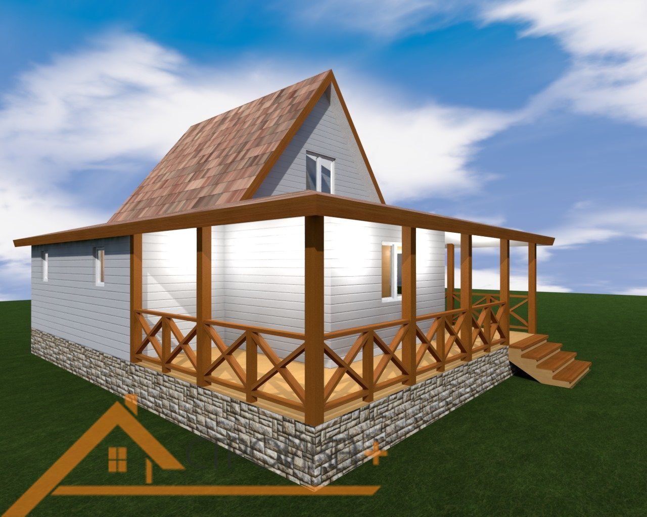 Дача с мансардой и верандой