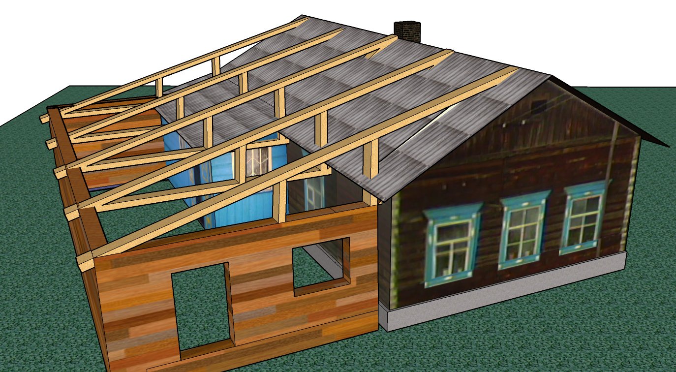 Пристройка к двускатной крыше