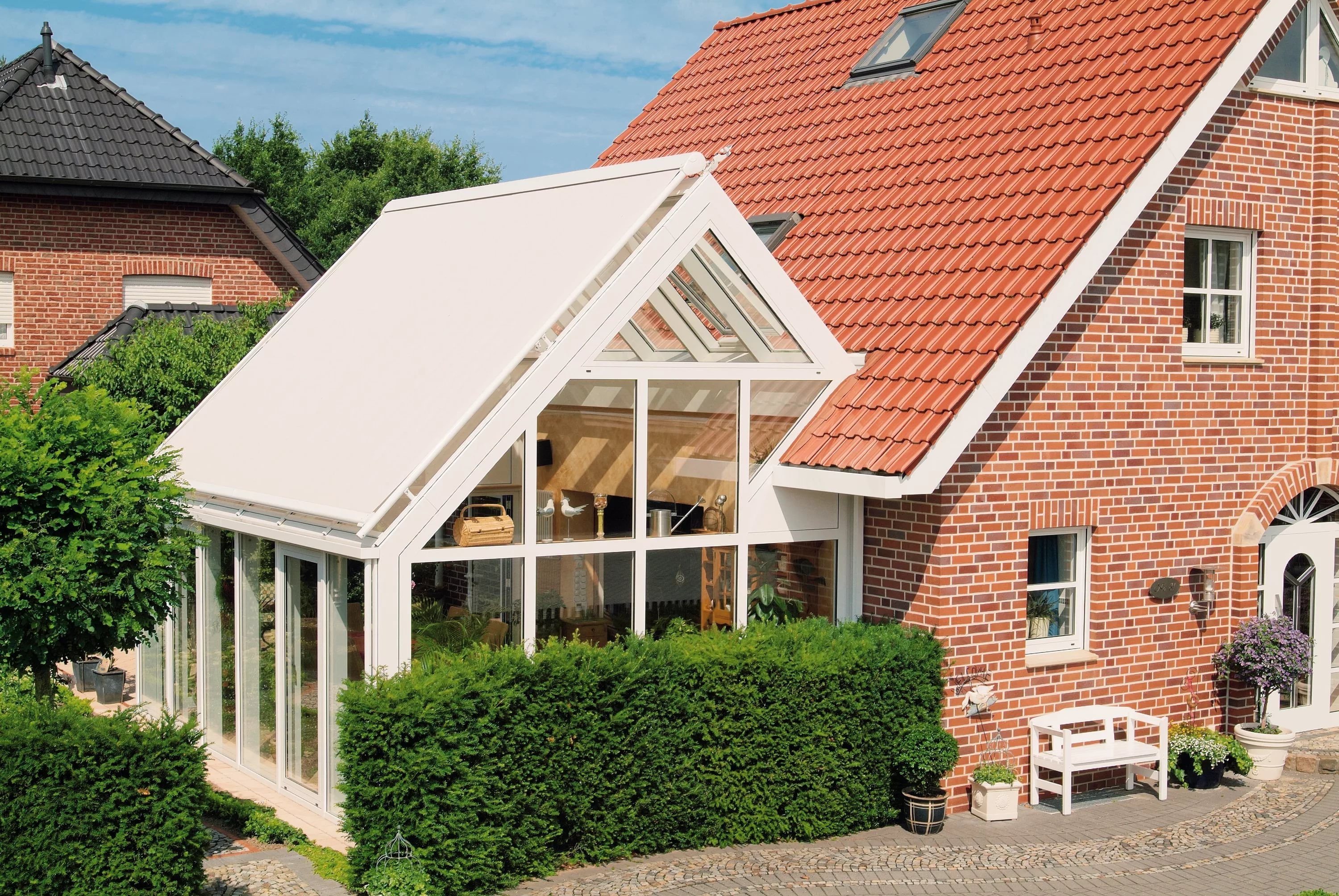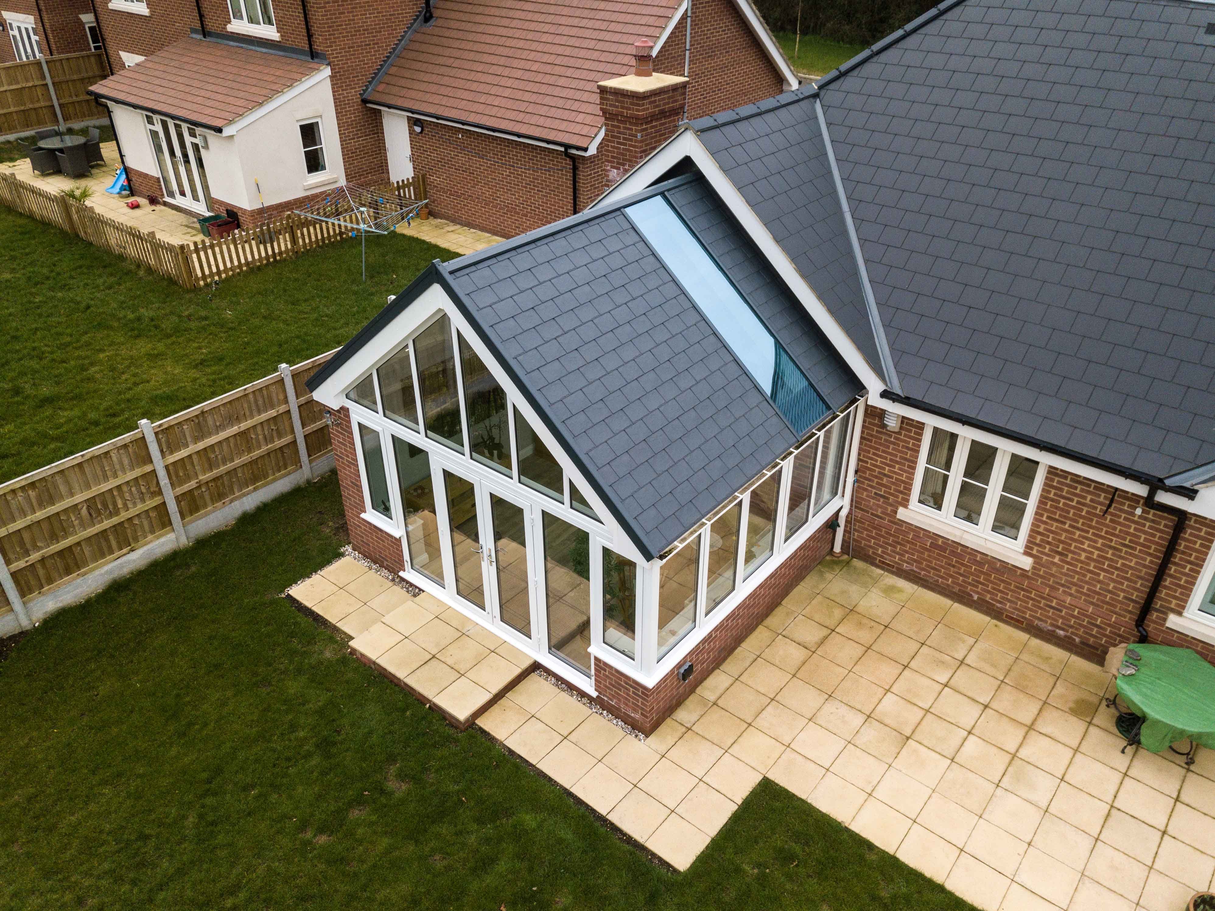 Пристройка к дому с ломаной крышей