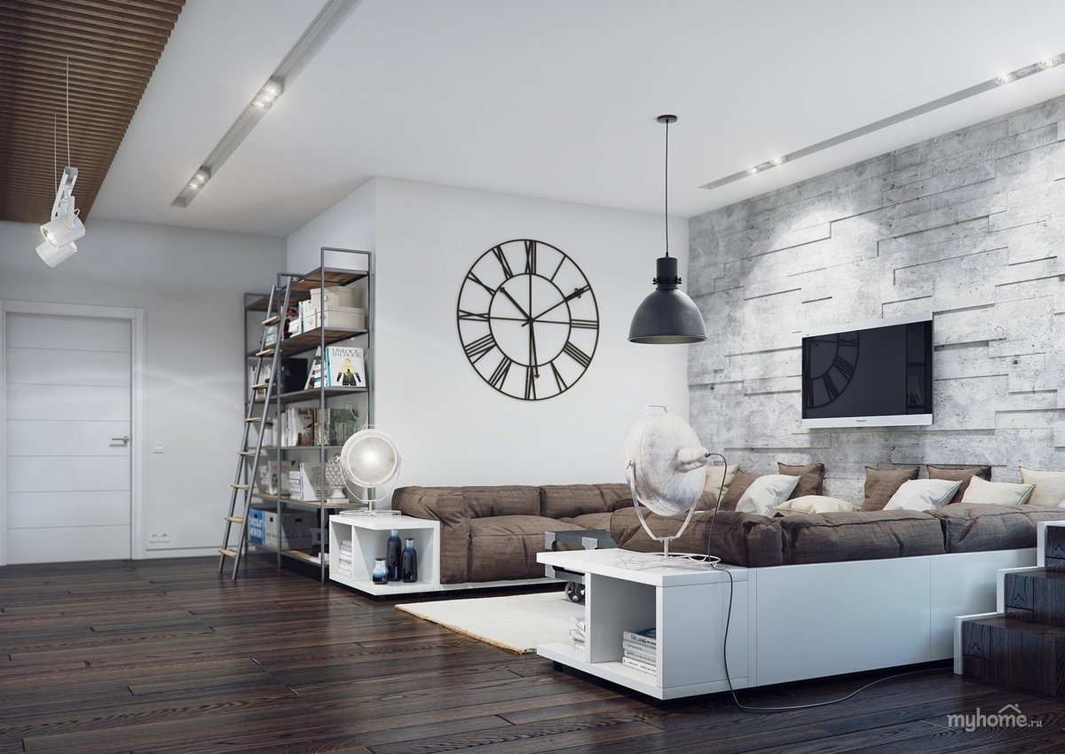 Гостиная в стиле лофт светлая