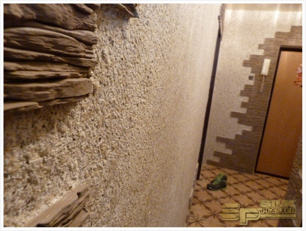 Декоративная штукатурка с камнем в прихожей