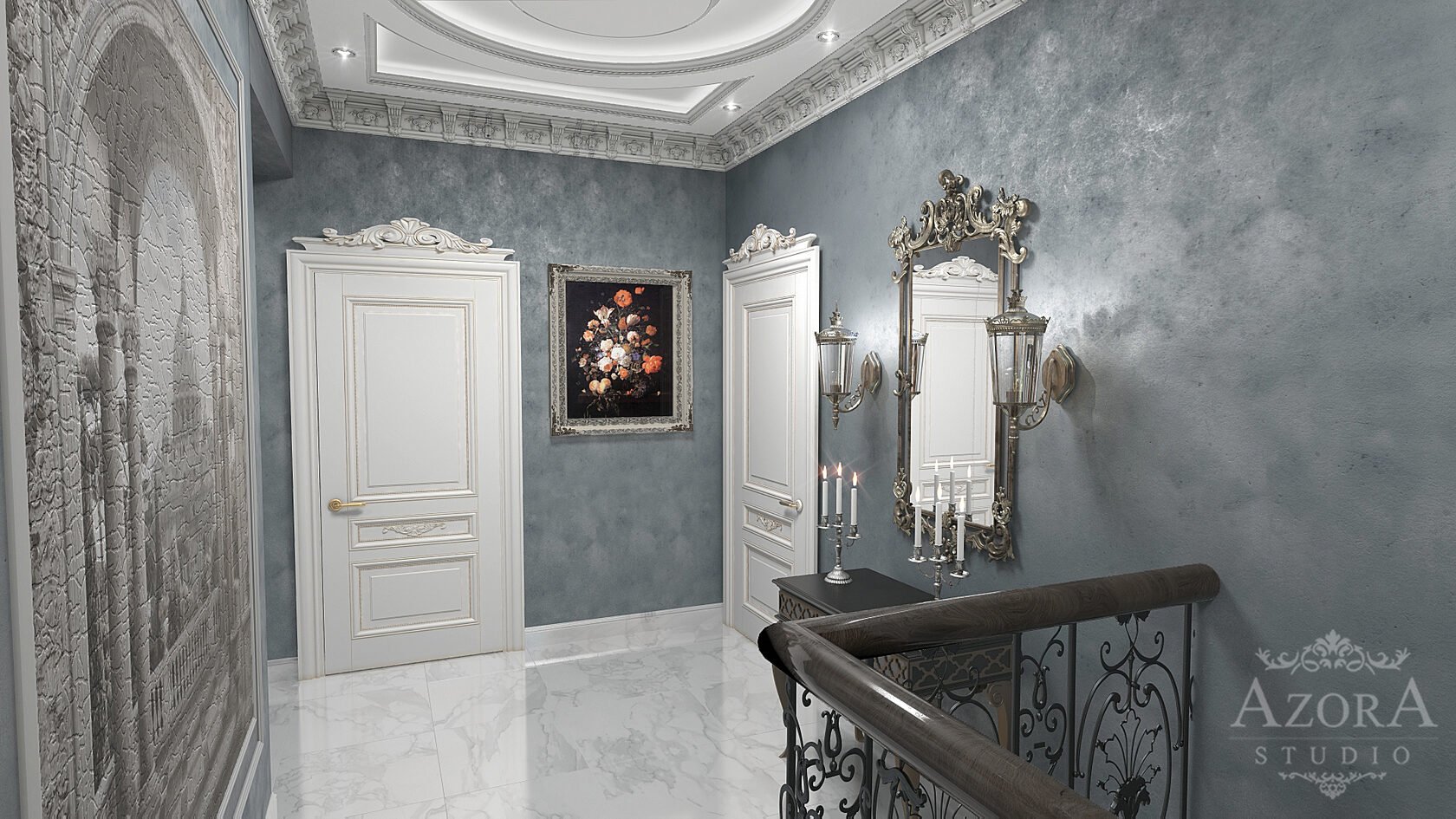 Мраморные стены в коридоре
