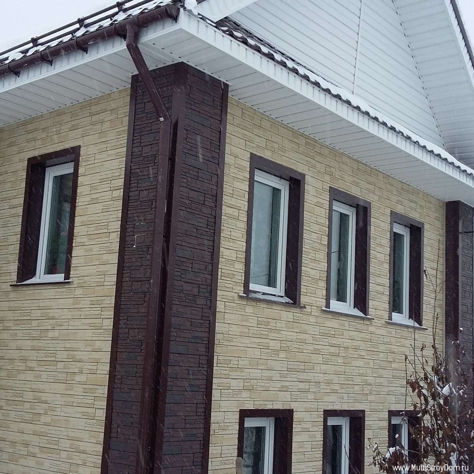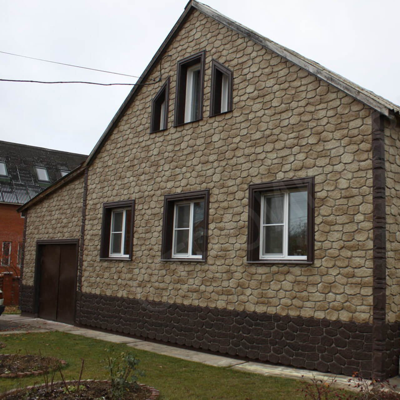 Фасад из сайдинга под камень