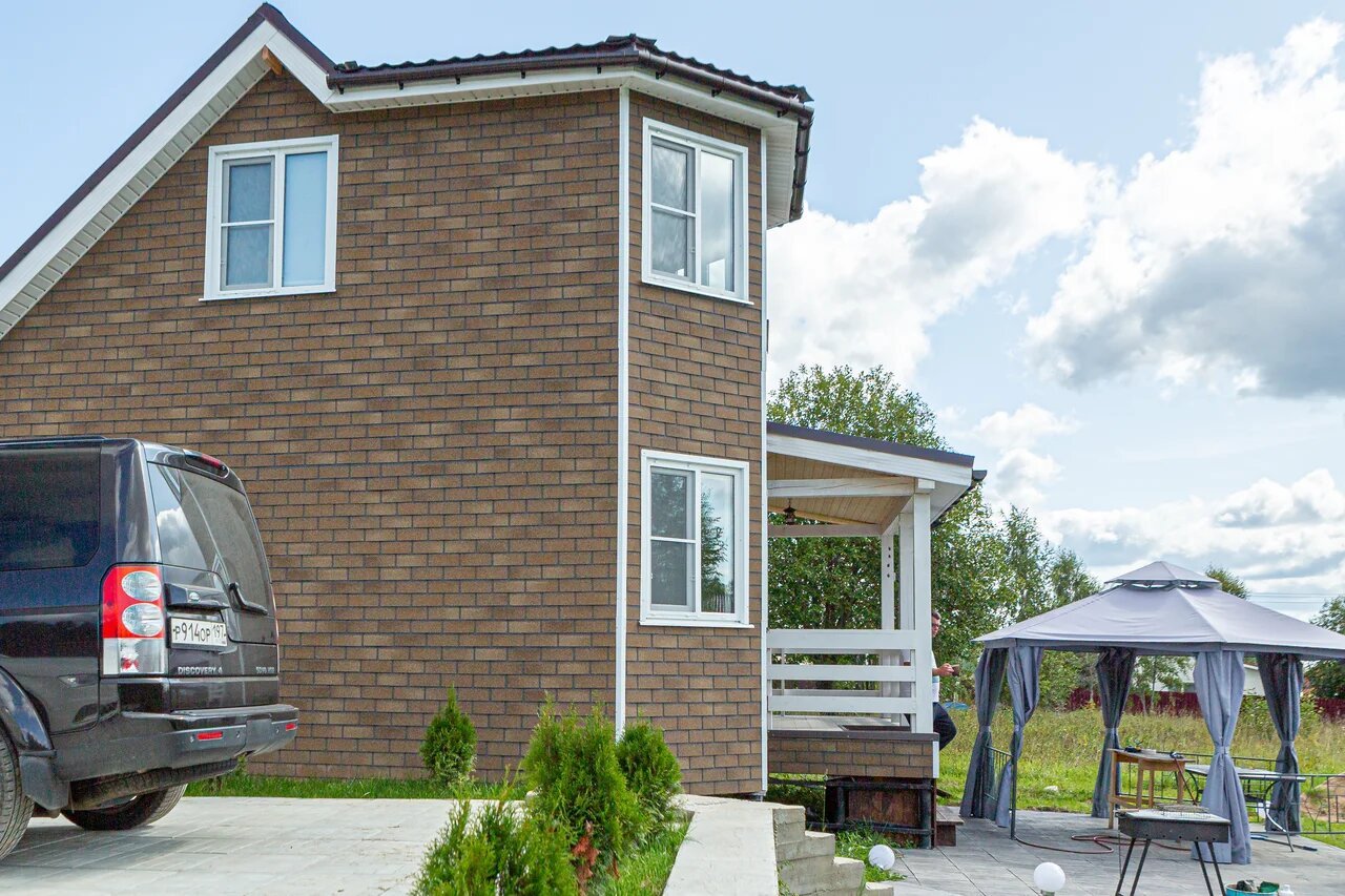 Фасад дома из гибкой черепицы