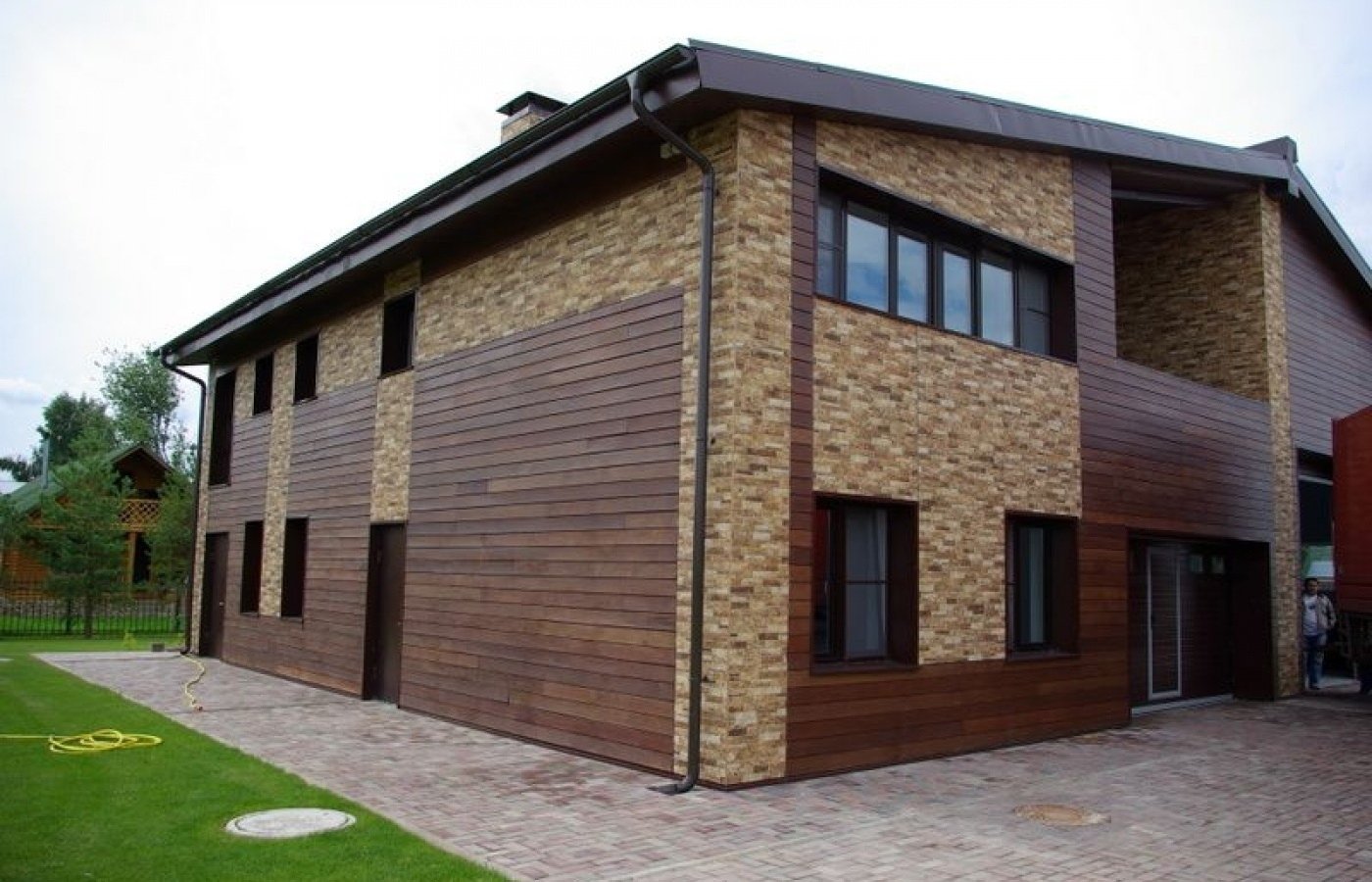 Фасад кирпич и дерево