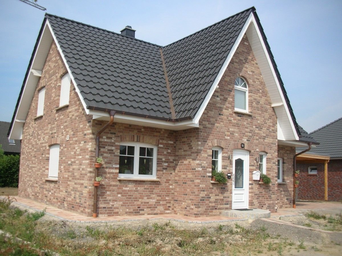 Хауберг светлый кирпич на фасаде
