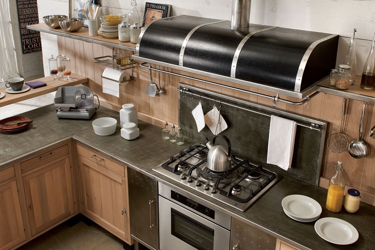 Кухни из металла и дерева в стиле лофт