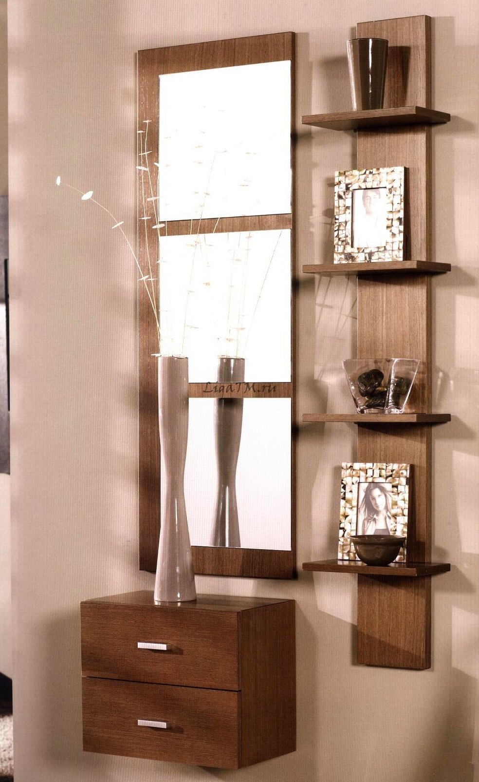 Зеркало в прихожую настенное с полочкой и подсветкой