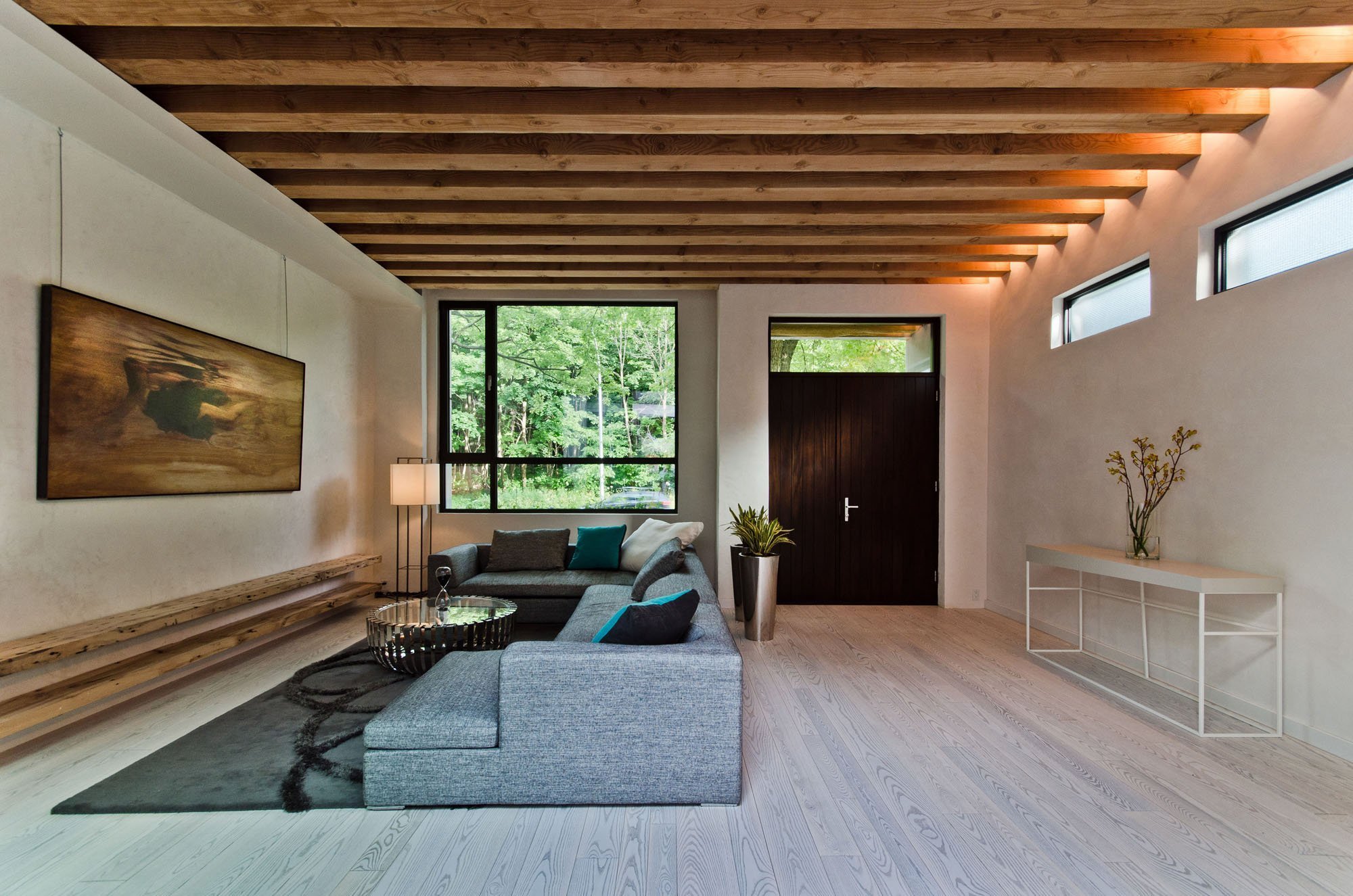 Деревянные балки с подсветкой