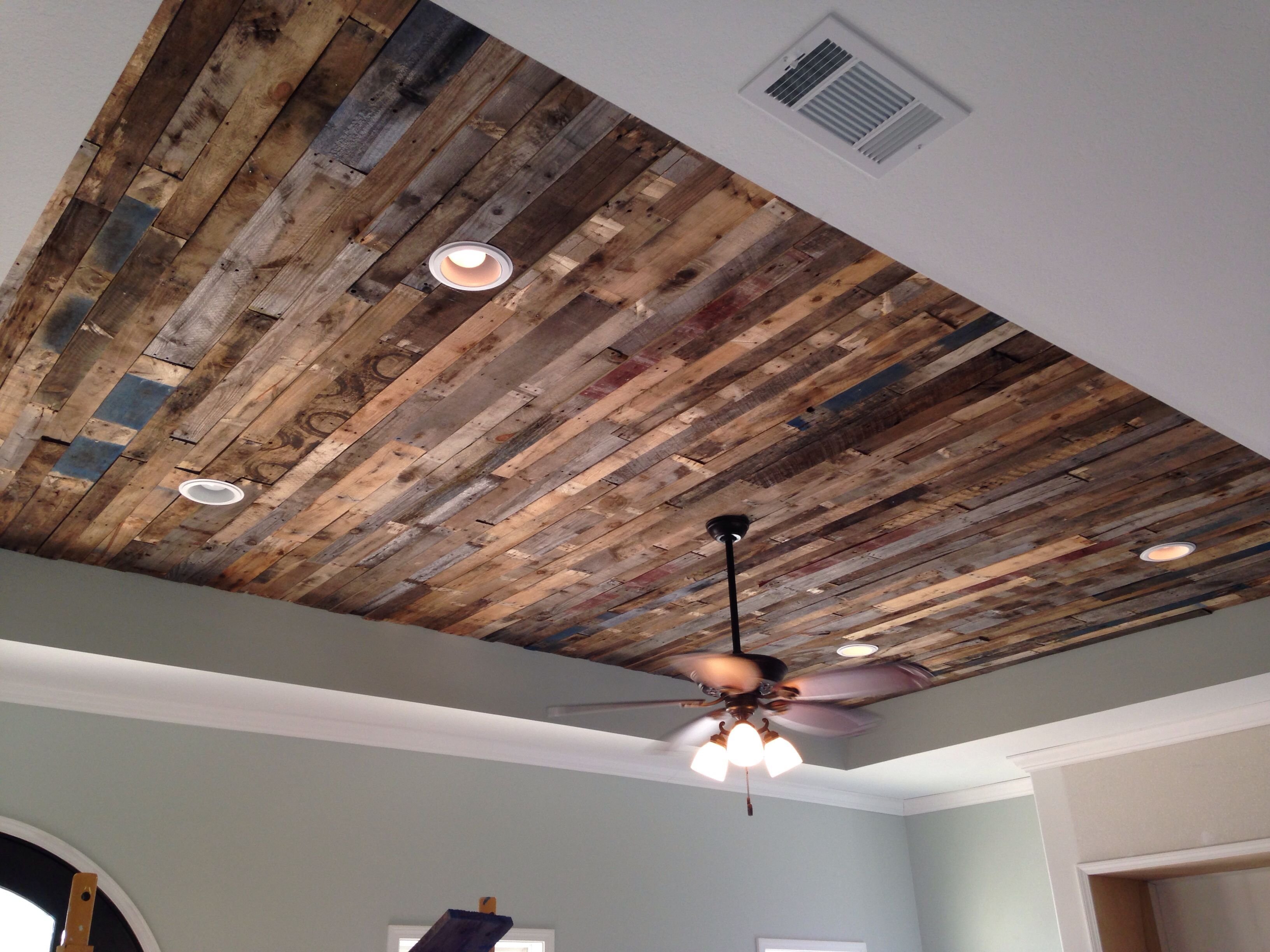 Обои под дерево на потолке
