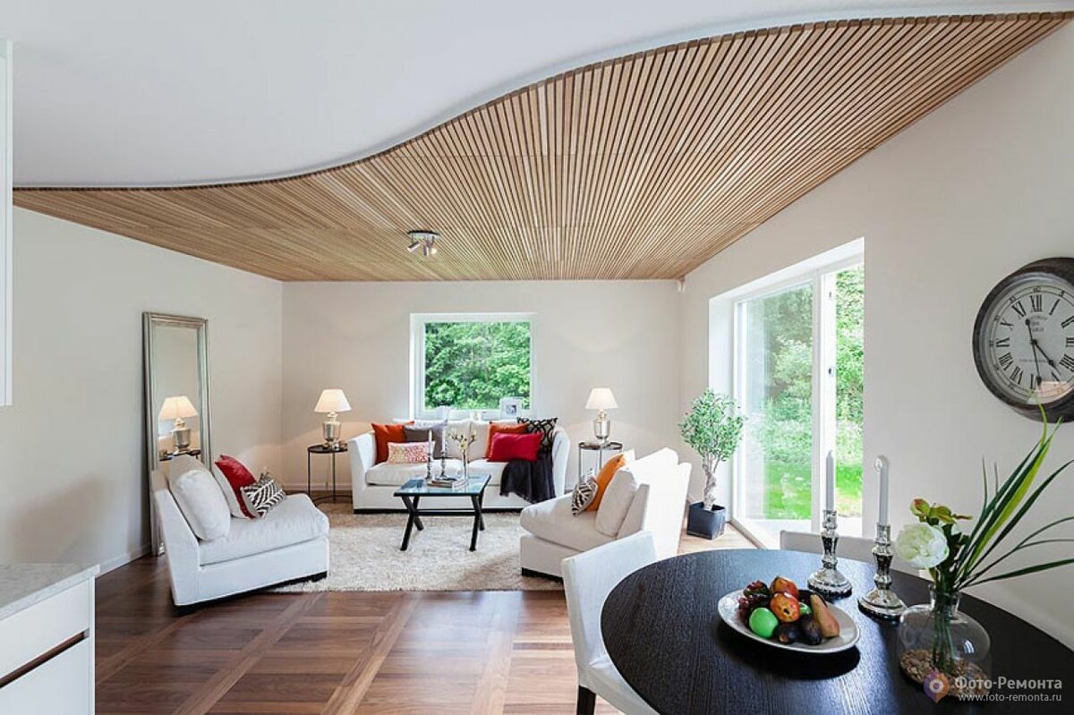 Жилая комната волнистый деревянный потолок