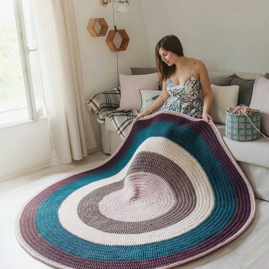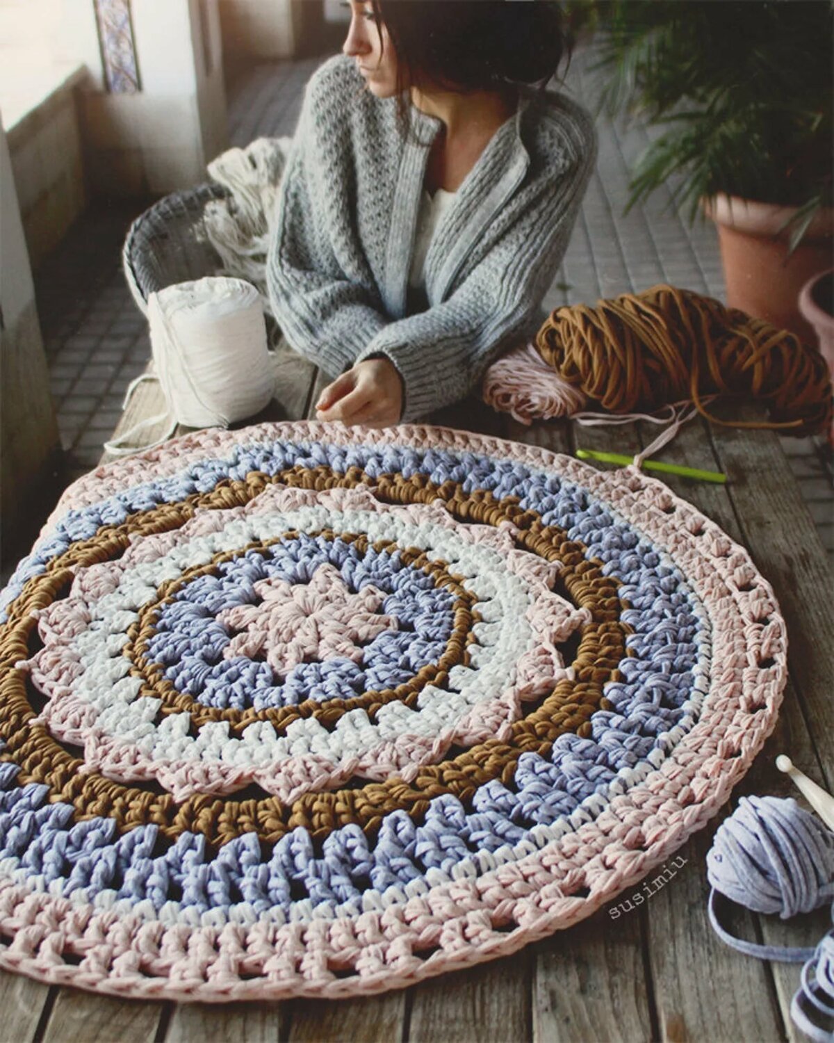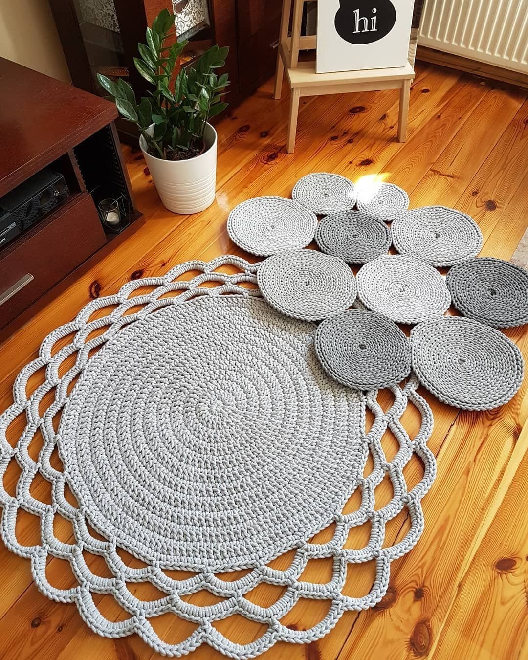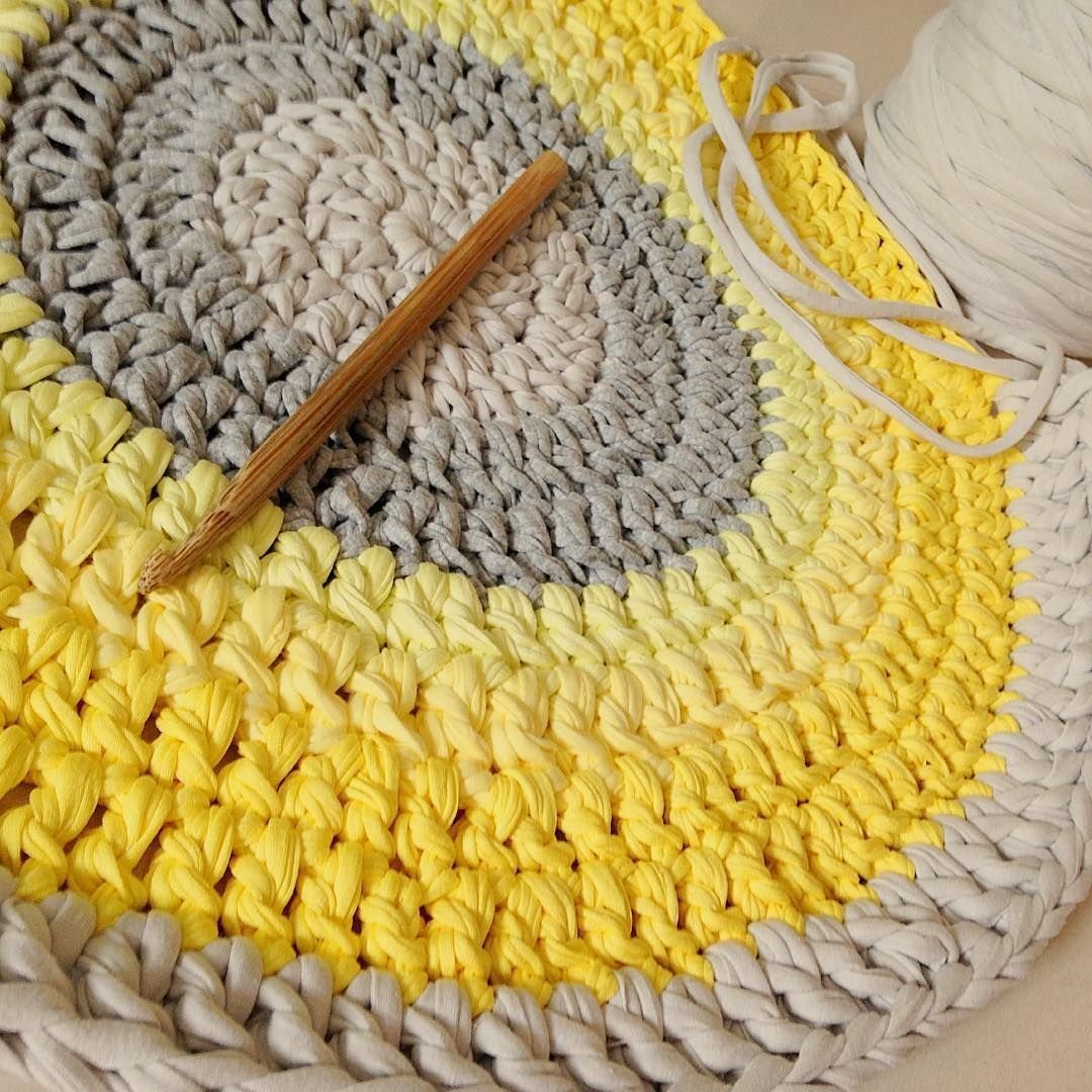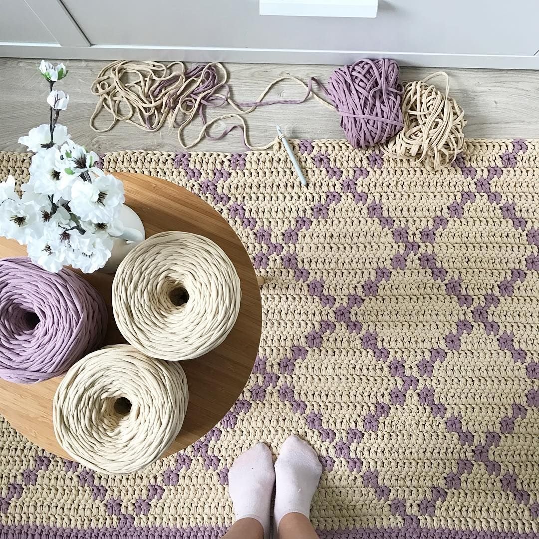 Вязание ковриков из трикотажной пряжи крючком схемы и описание