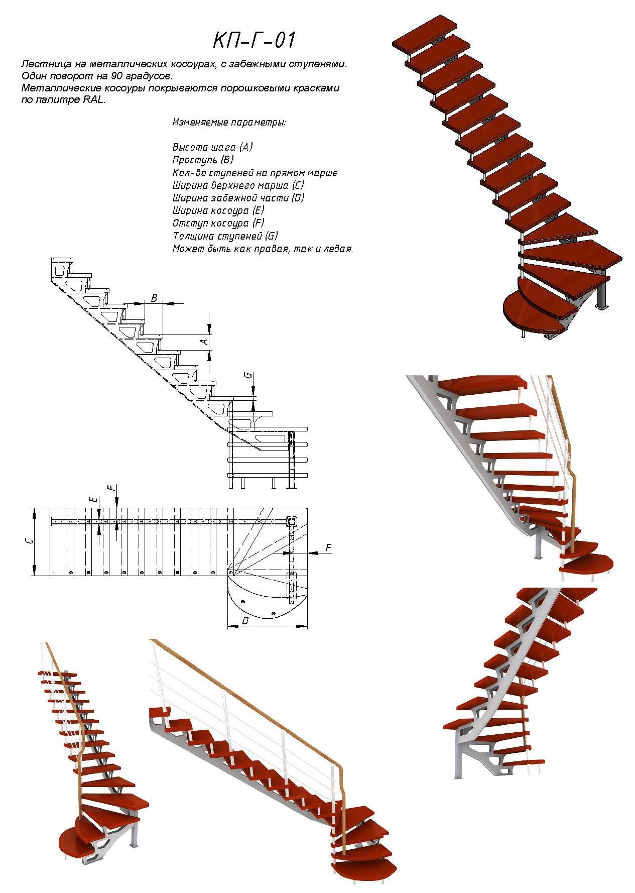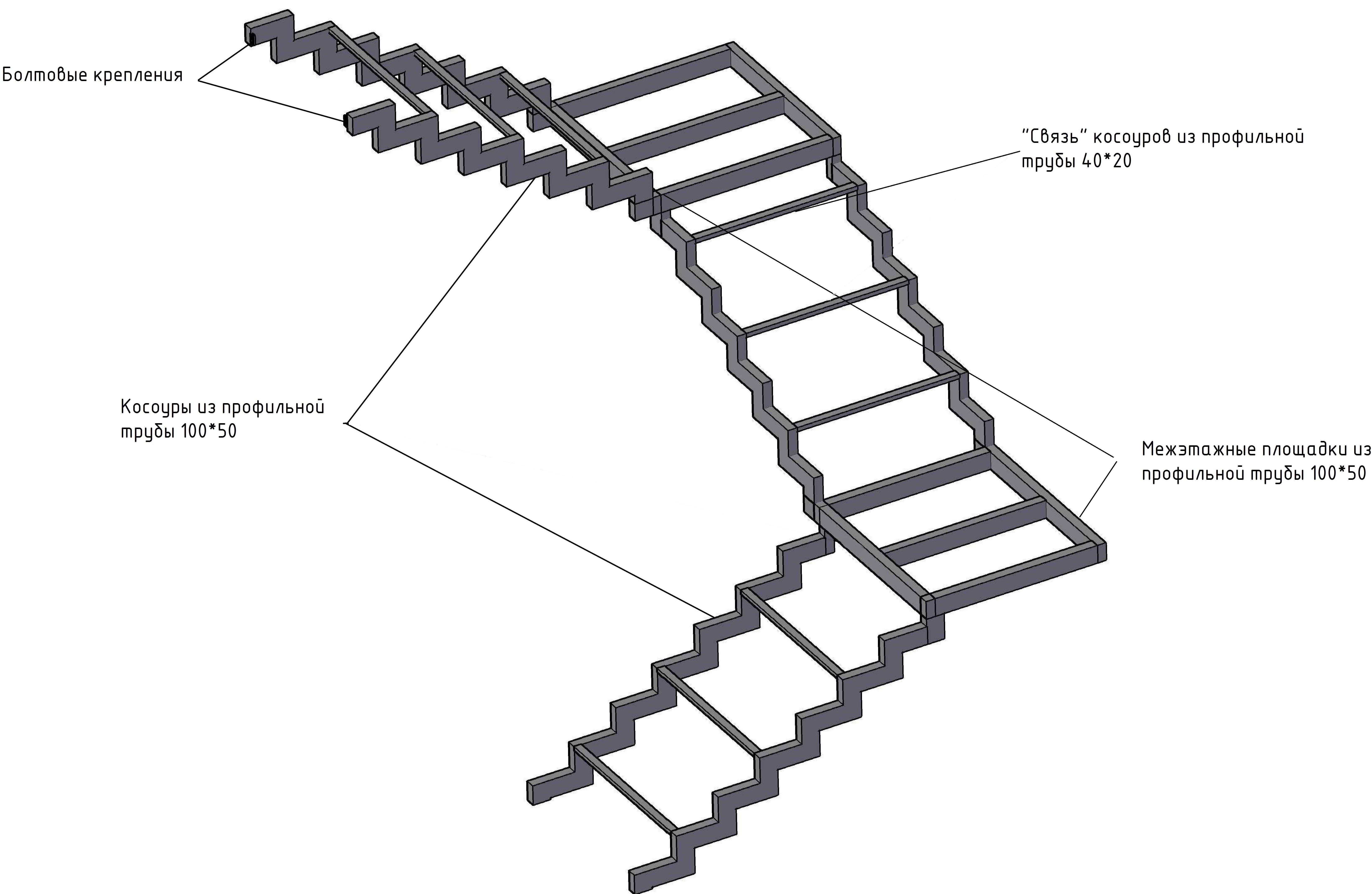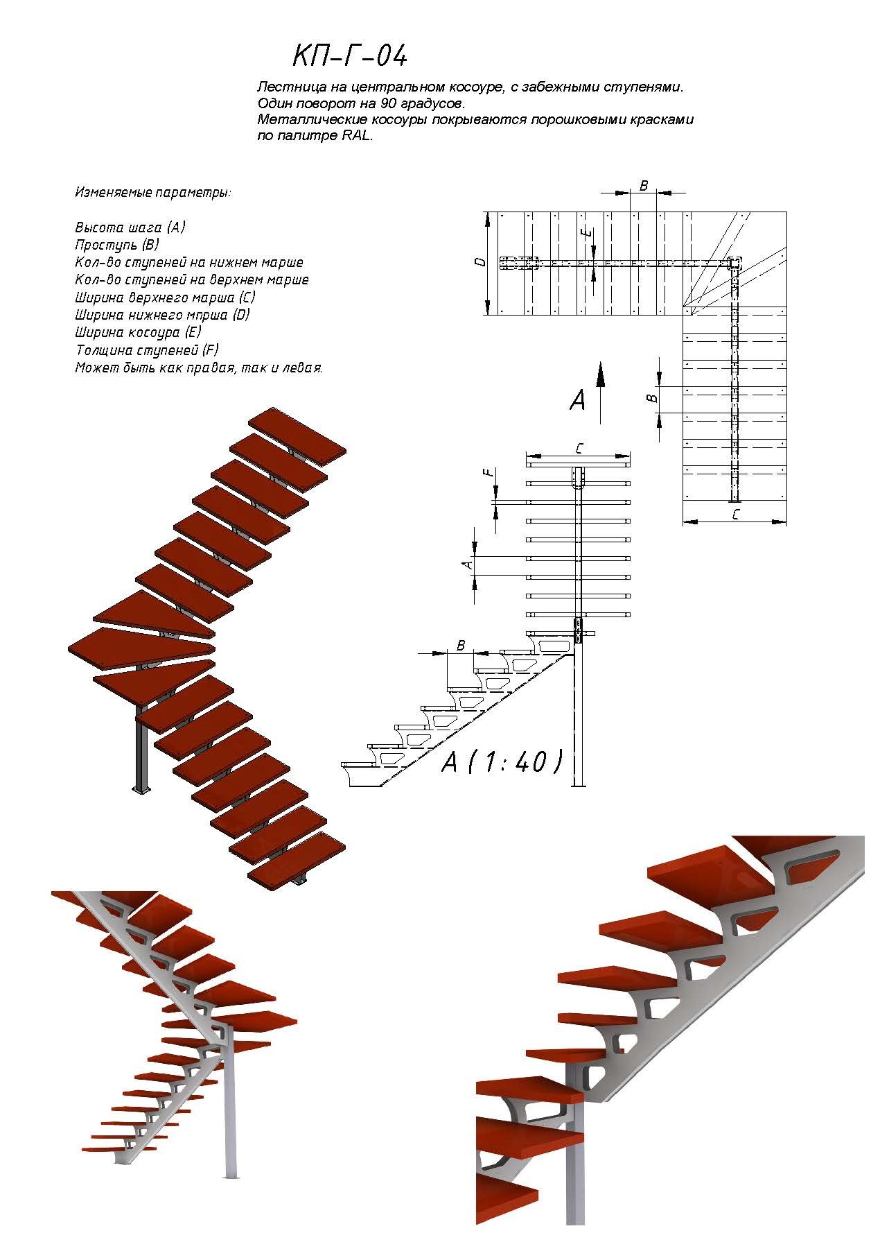 Лестницы на монокосоуре с поворотом на 180 градусов