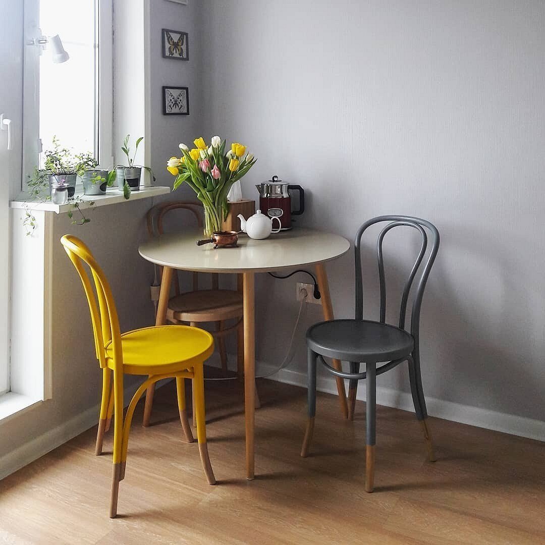 Разные Венские стулья за одним столом в интерьере