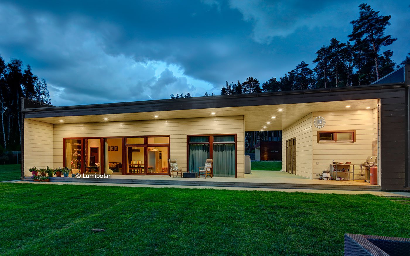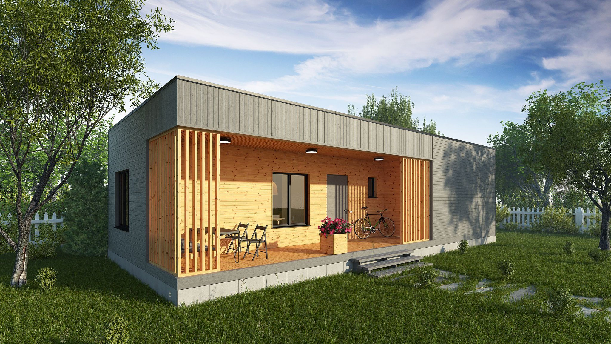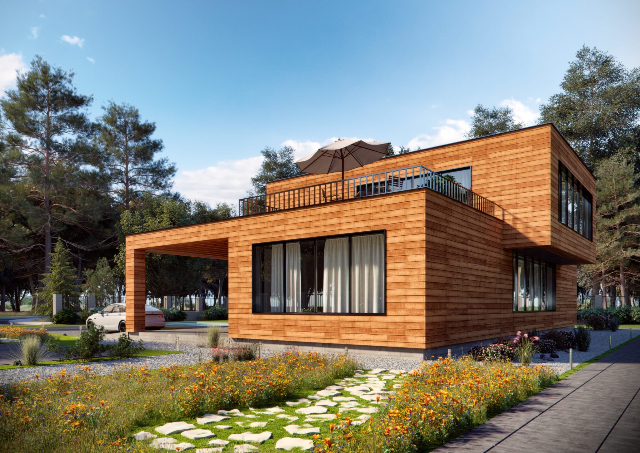 Одноэтажный каркасный дом с плоской крышей 100 кв