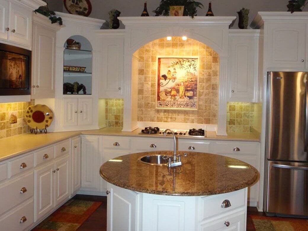 Кухня с угловой плитой в ви