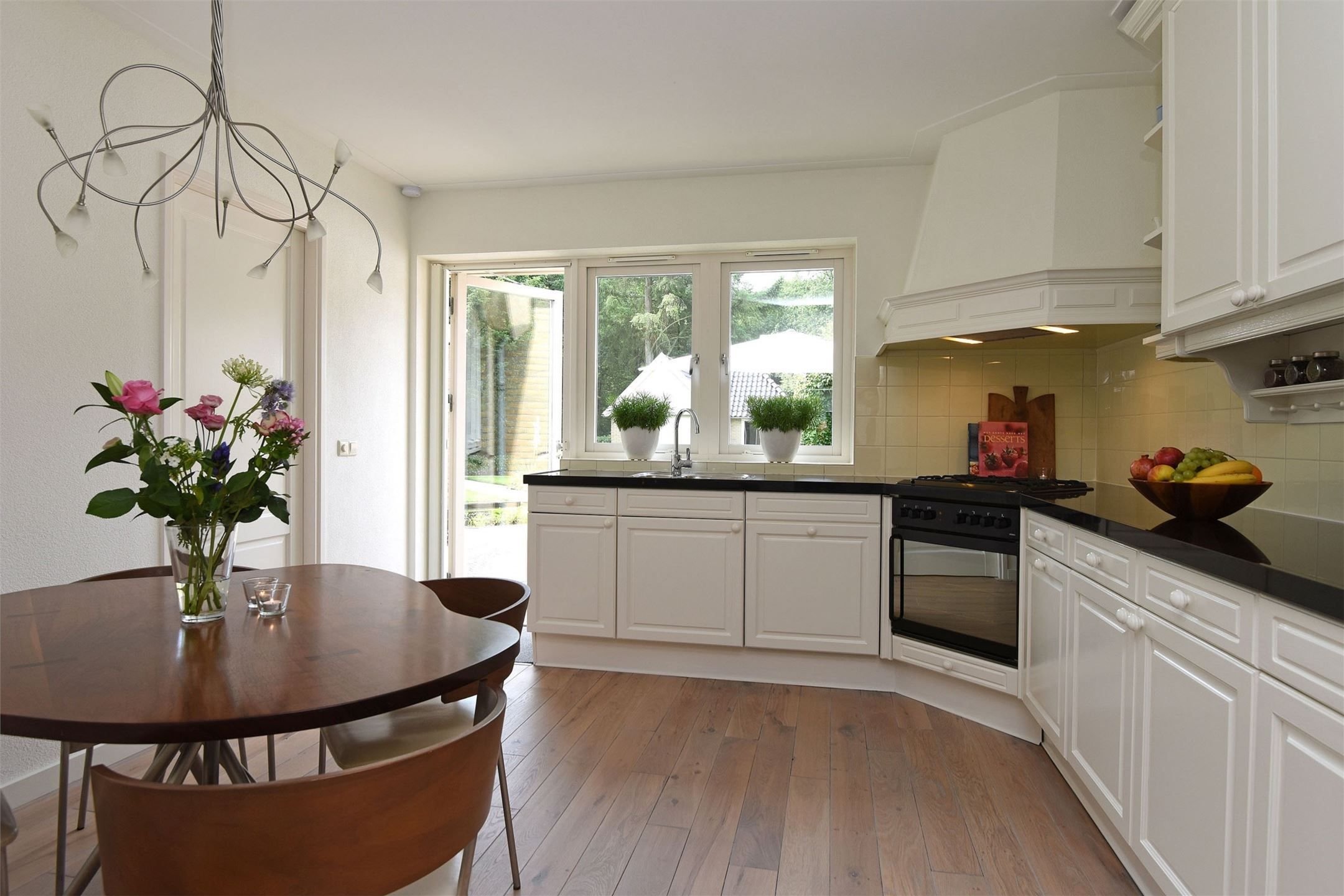 Угловая кухня с окном в частном доме