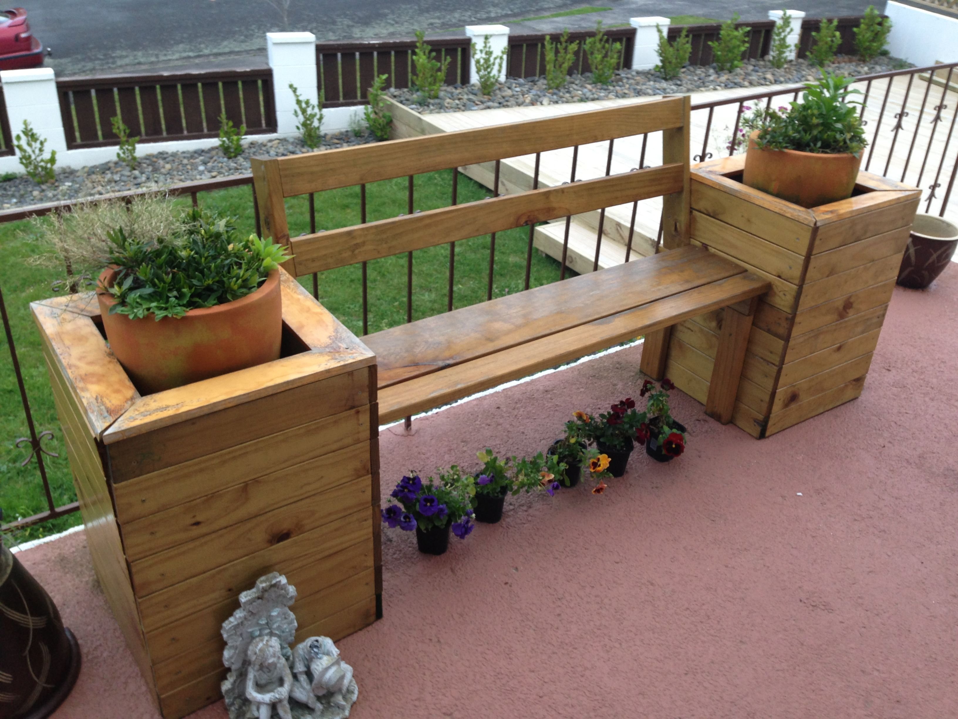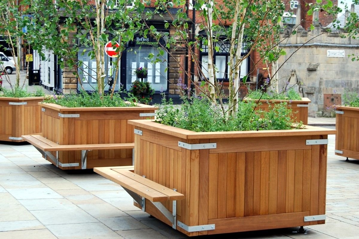 Скамья с вазонами деревянная