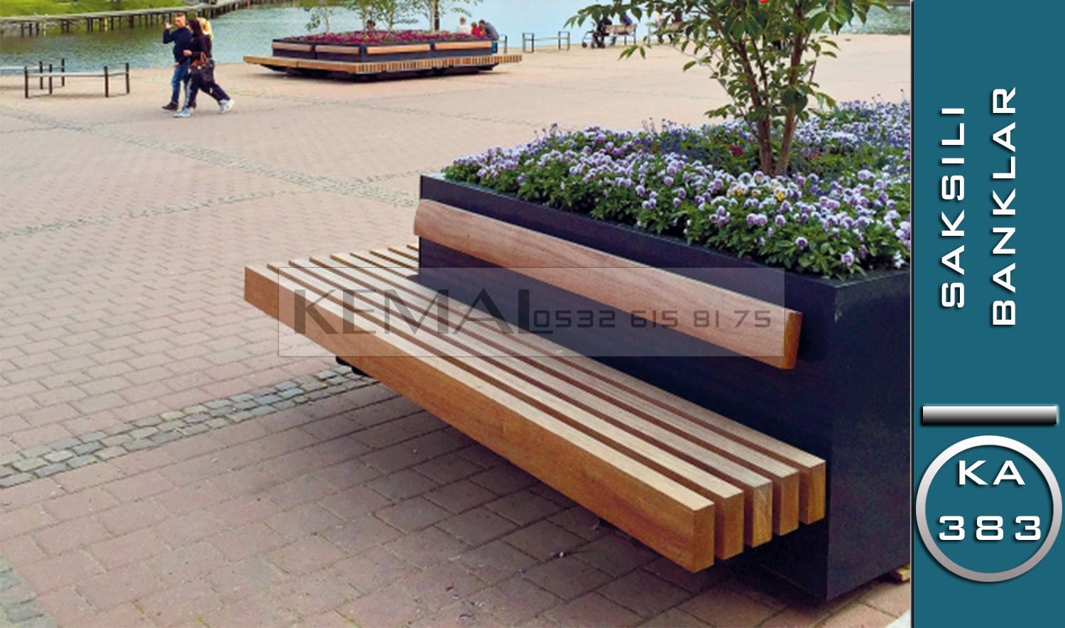 Деревянная скамейка с клумбой
