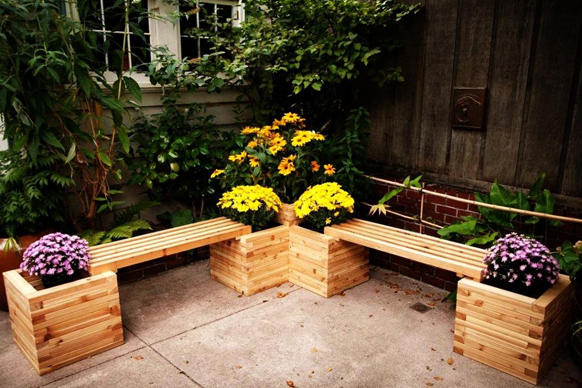 Деревянная скамейка-цветник
