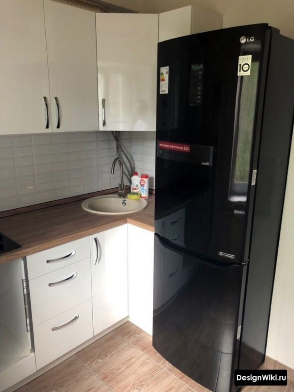 Раковина возле холодильника