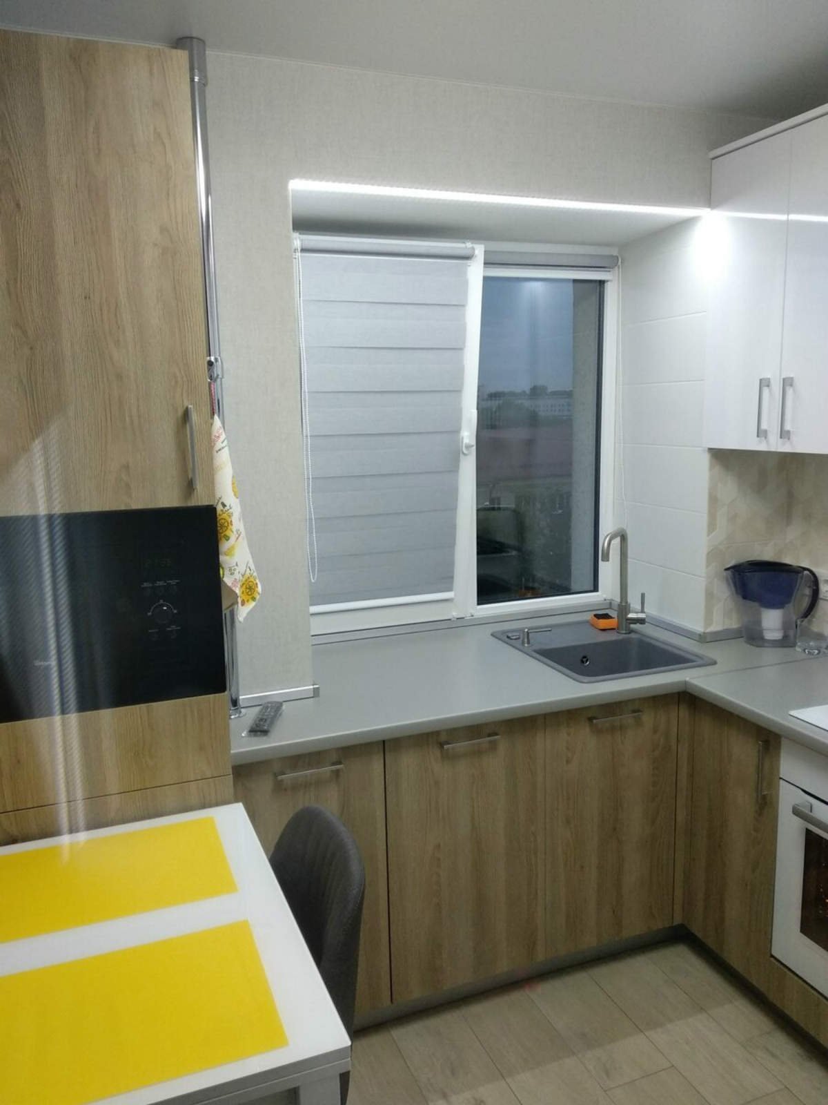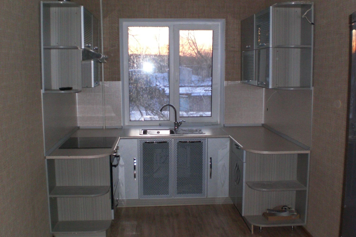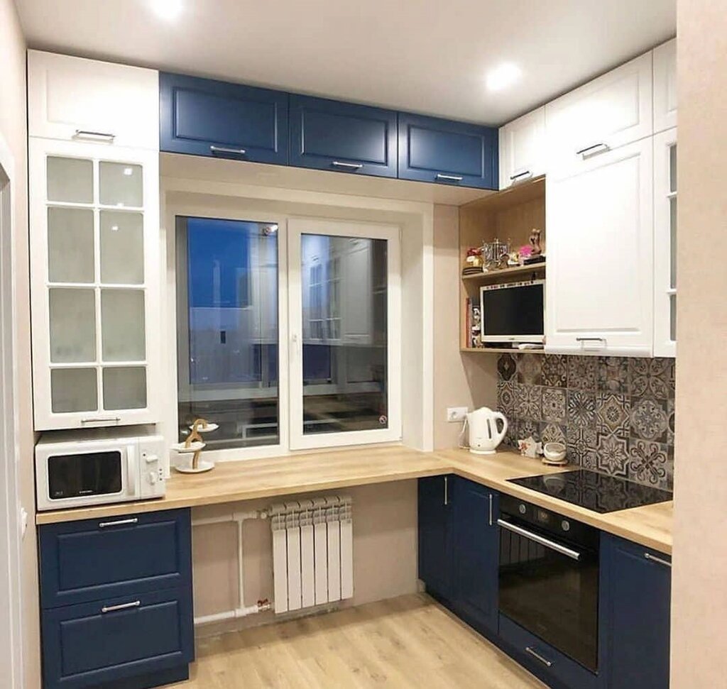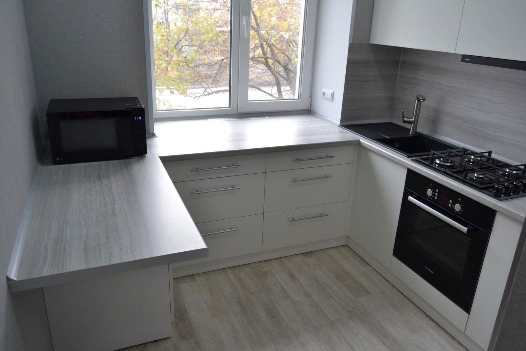 Кухонный гарнитур для маленькой кухни с окном