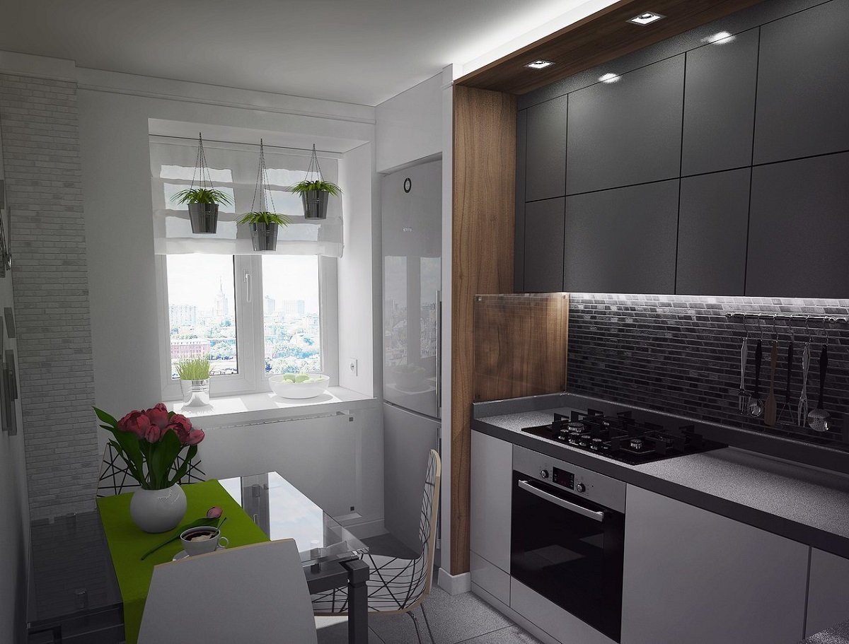 Планировка маленькой кухни с окном