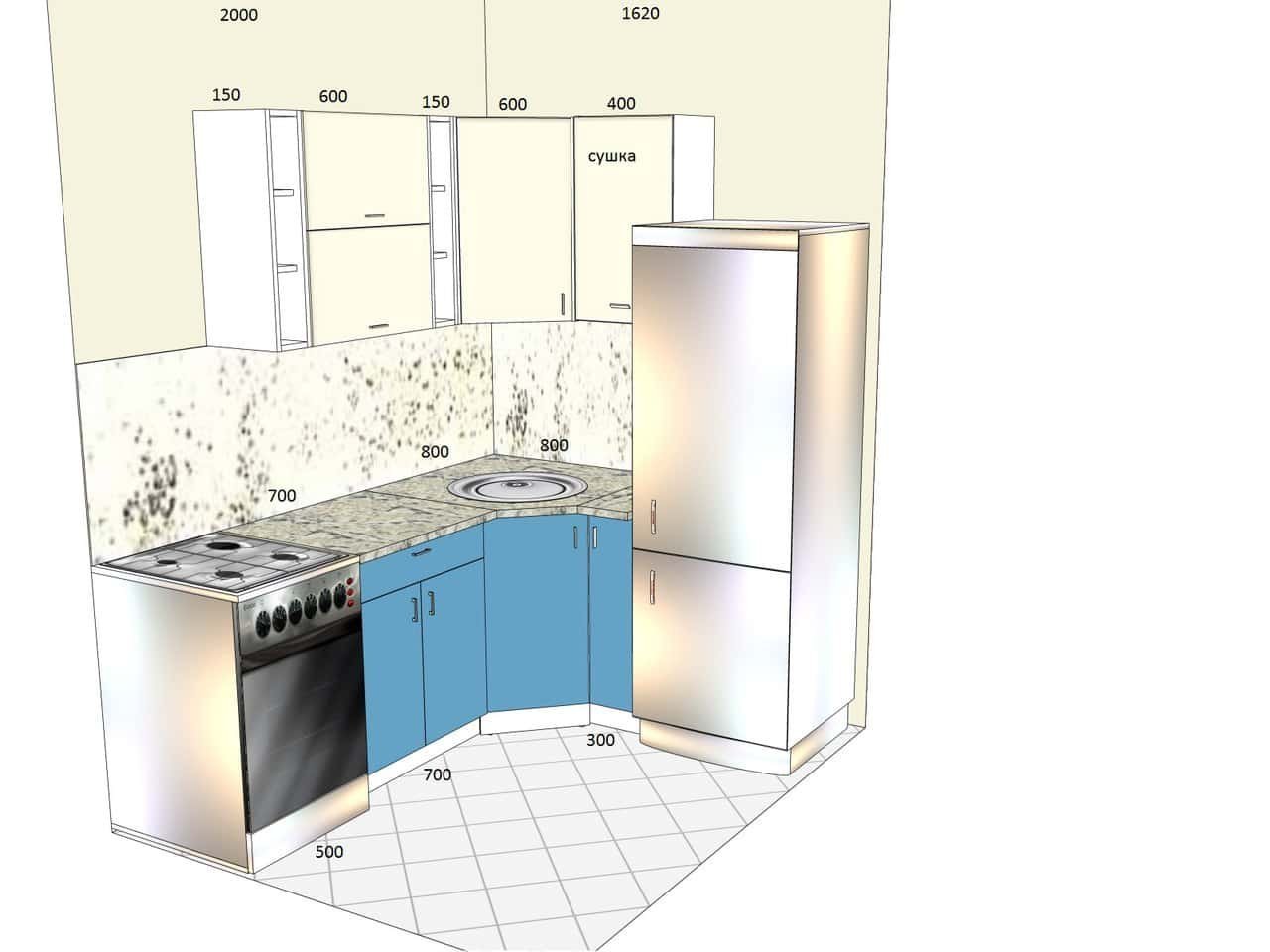 Угловая кухня хрущевка 5кв м