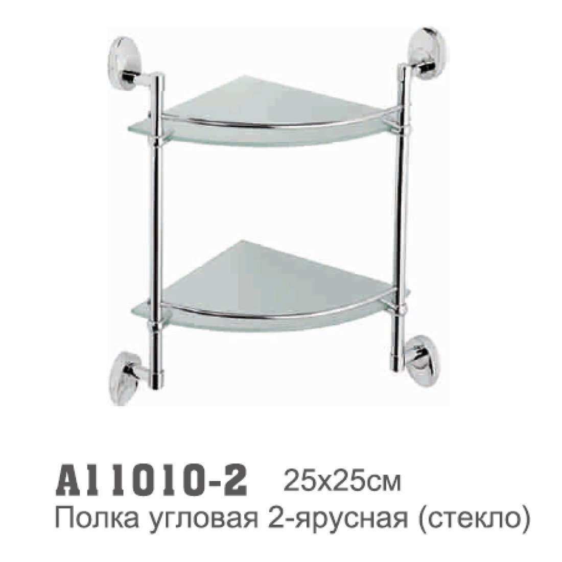 Полка стеклянная угловая двухъярусная CG-05, (нерж.сталь, стекло)