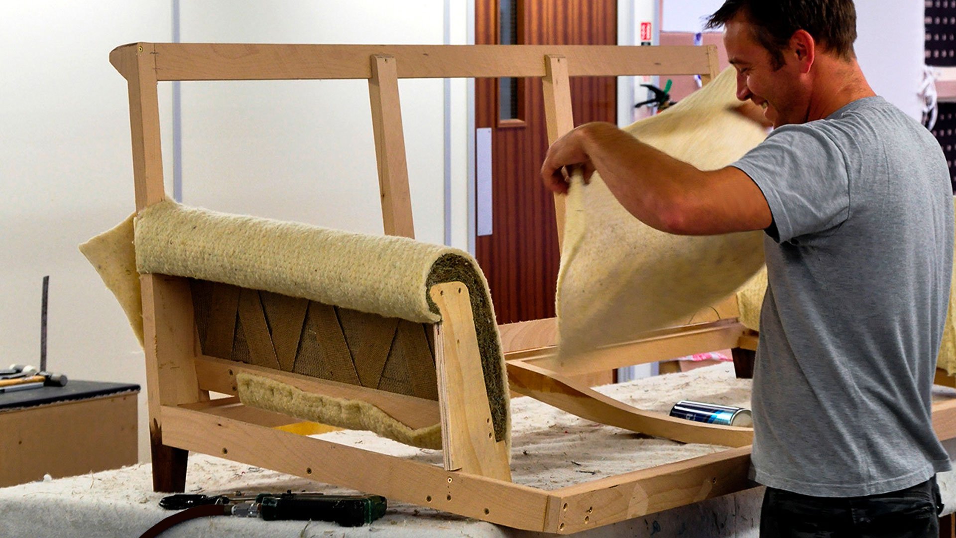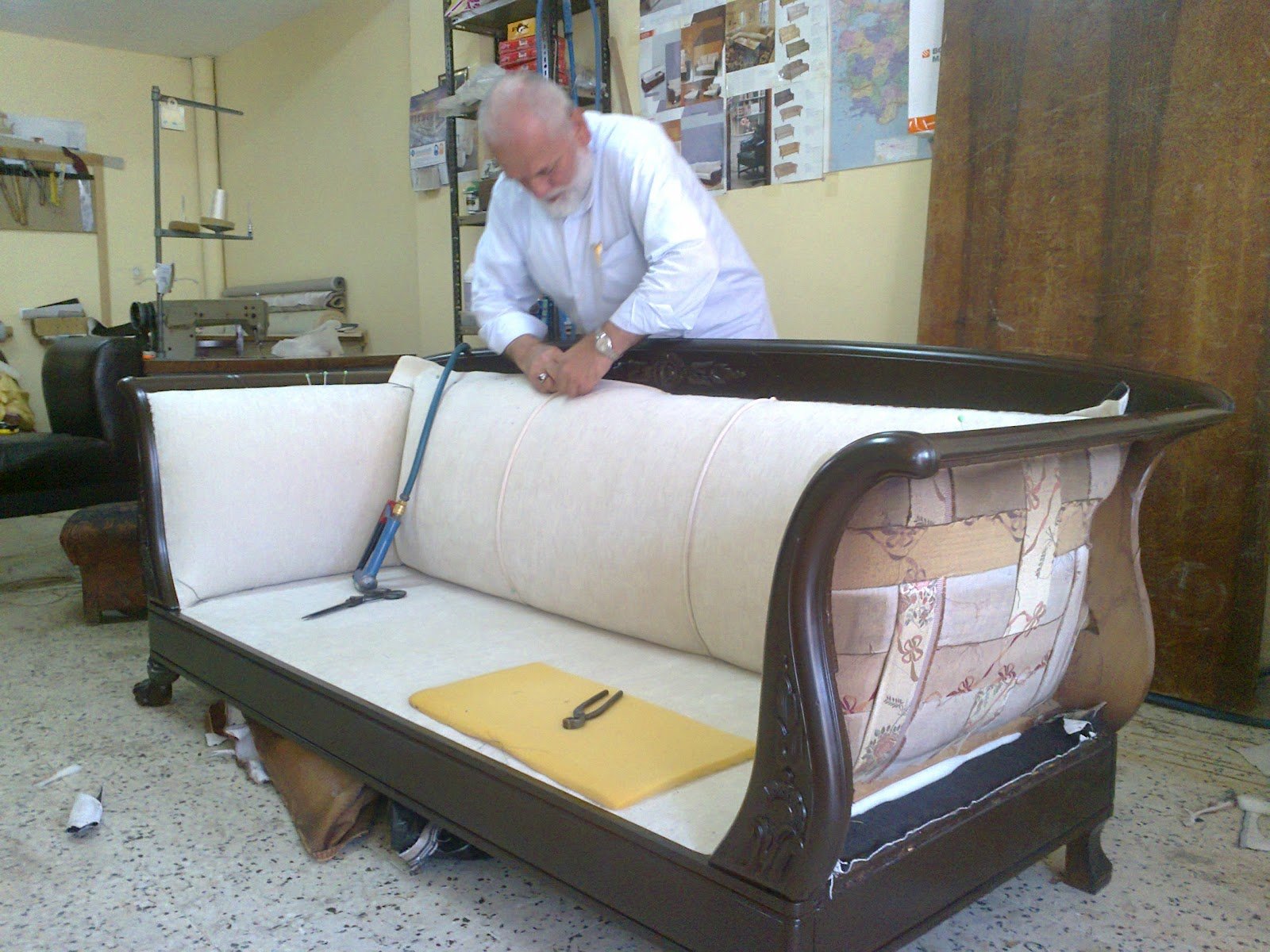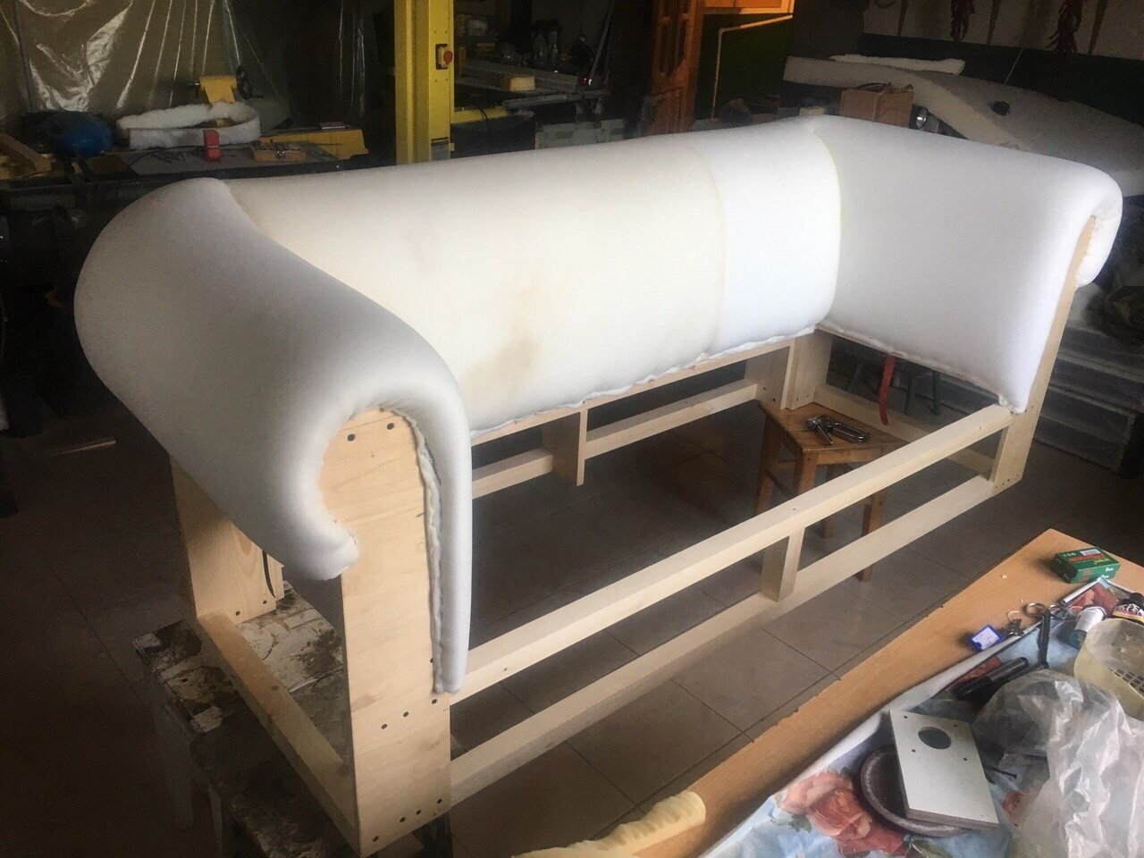Обтянуть диван поролоном