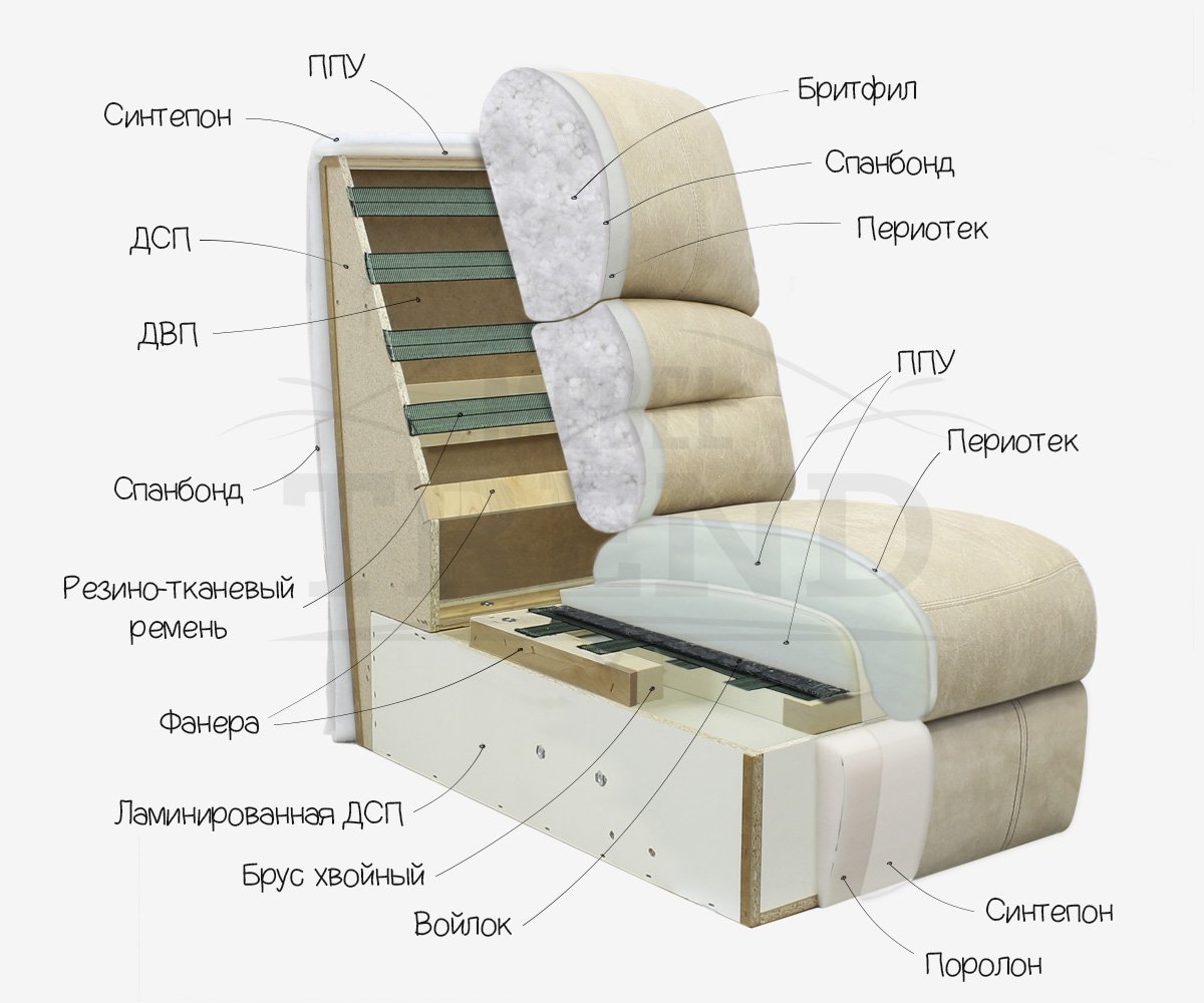 Наполнение дивана в разрезе