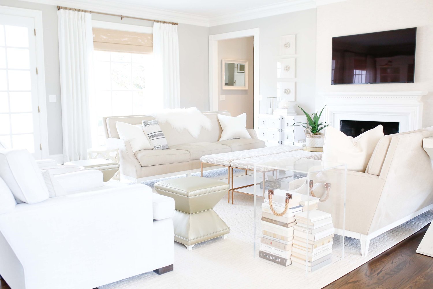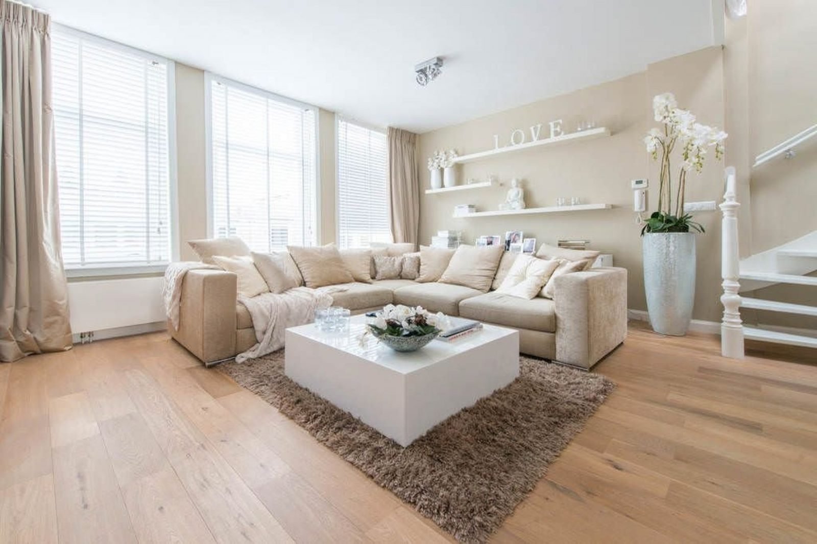 Уютная гостиная в белых тонах