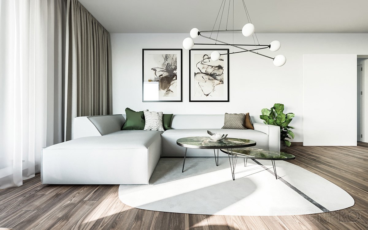Белая гостиная в стиле Минимализм