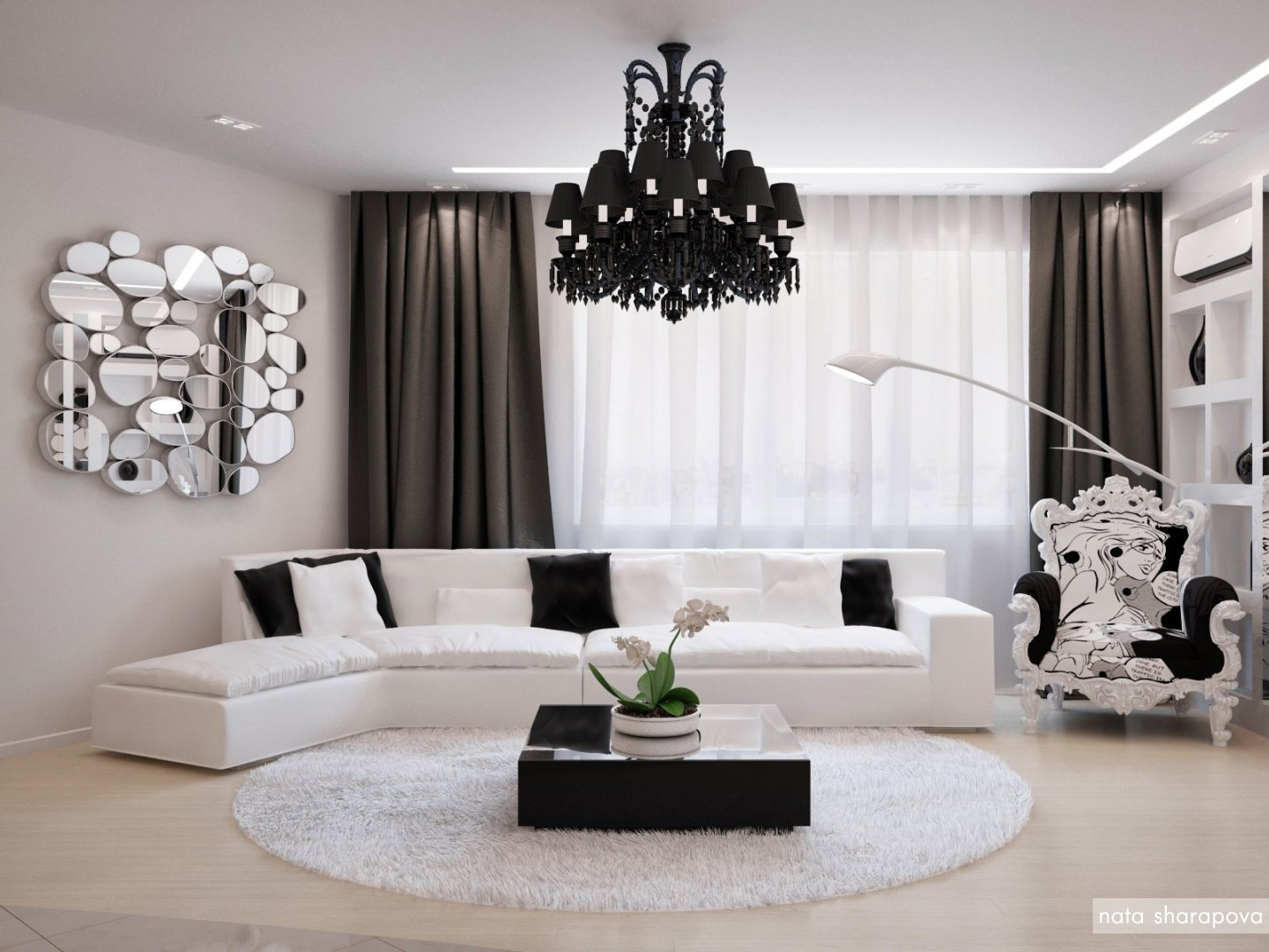 Черно белая гостиная