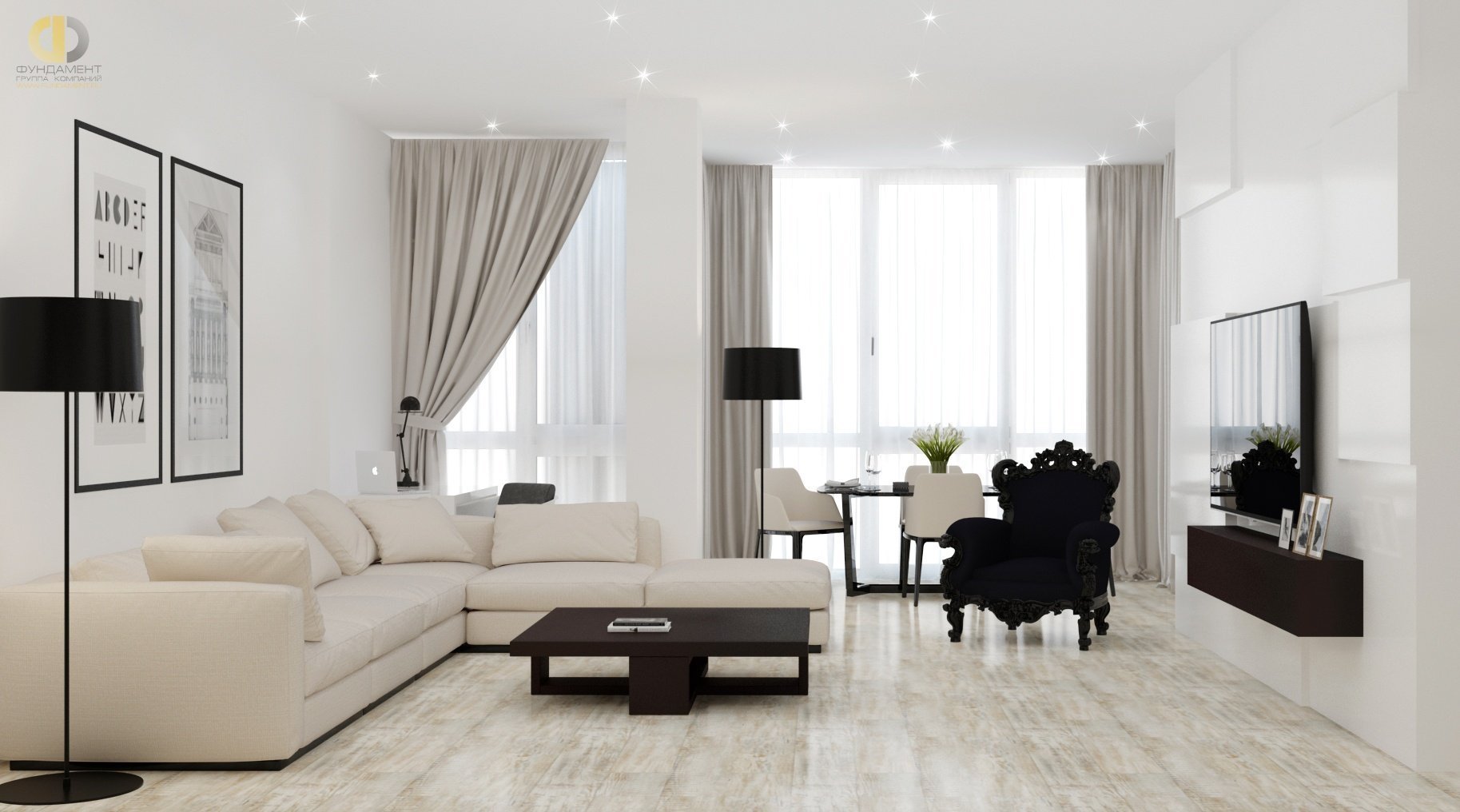 Гостиная в черно белом стиле