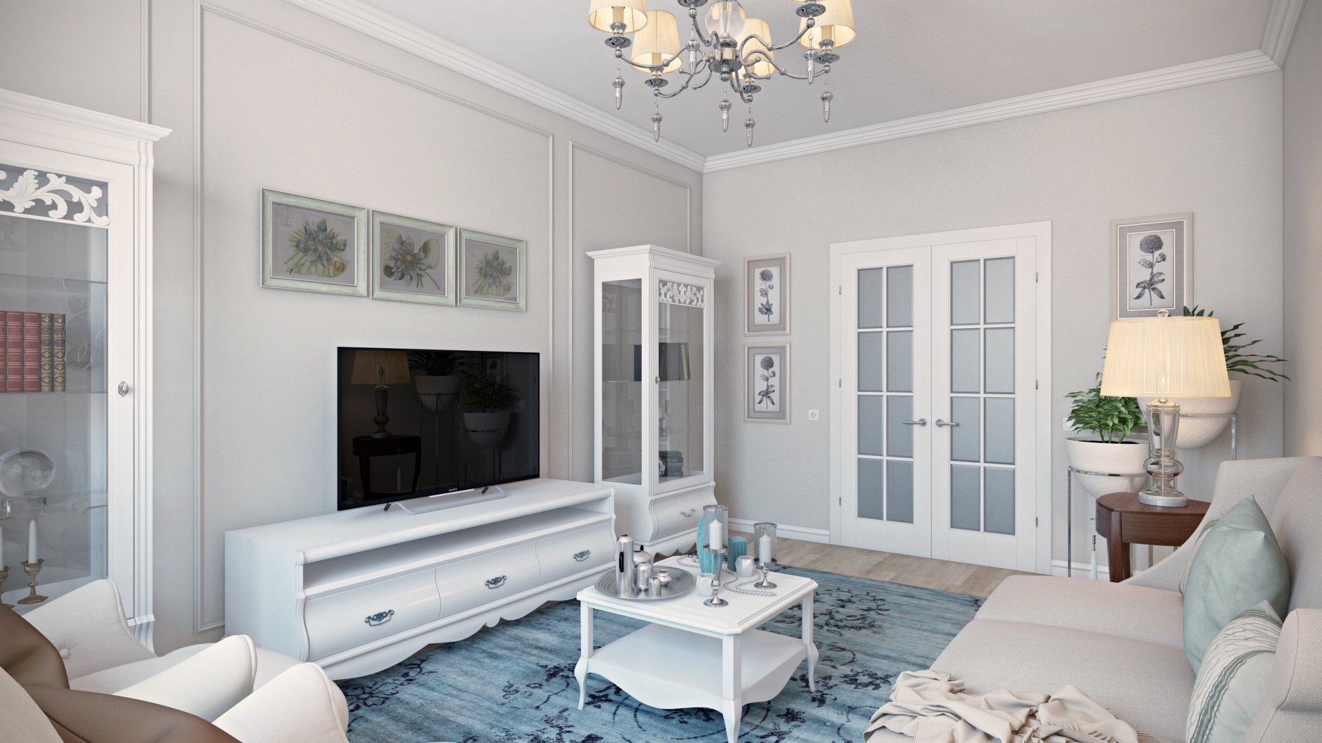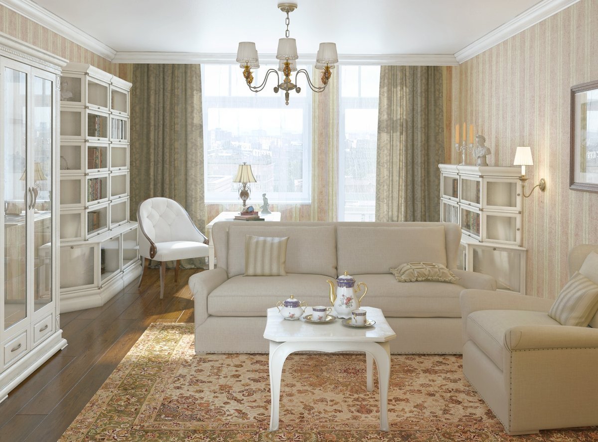 Гостиная Неоклассика 2023 в светлых тонах