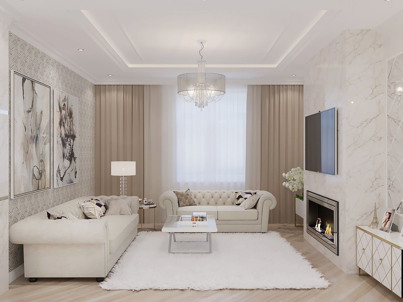 Гостиная в белых тонах