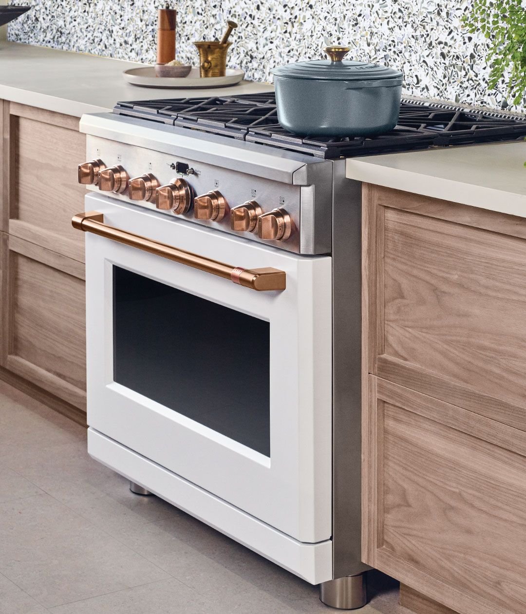 Отдельностоящая газовая плита в интерьере кухни