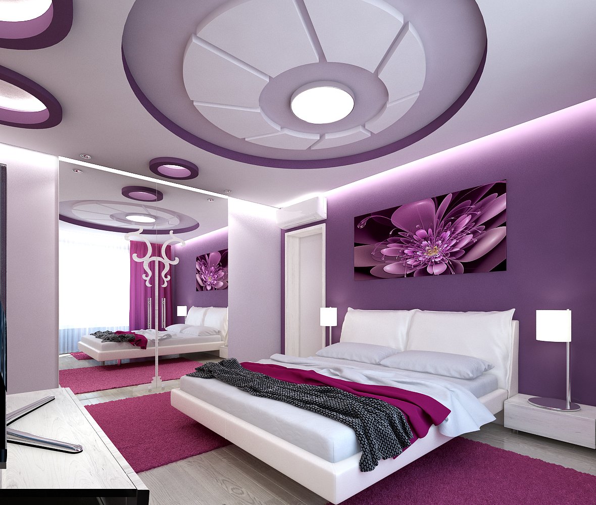 Фиолетовый потолок в спальне