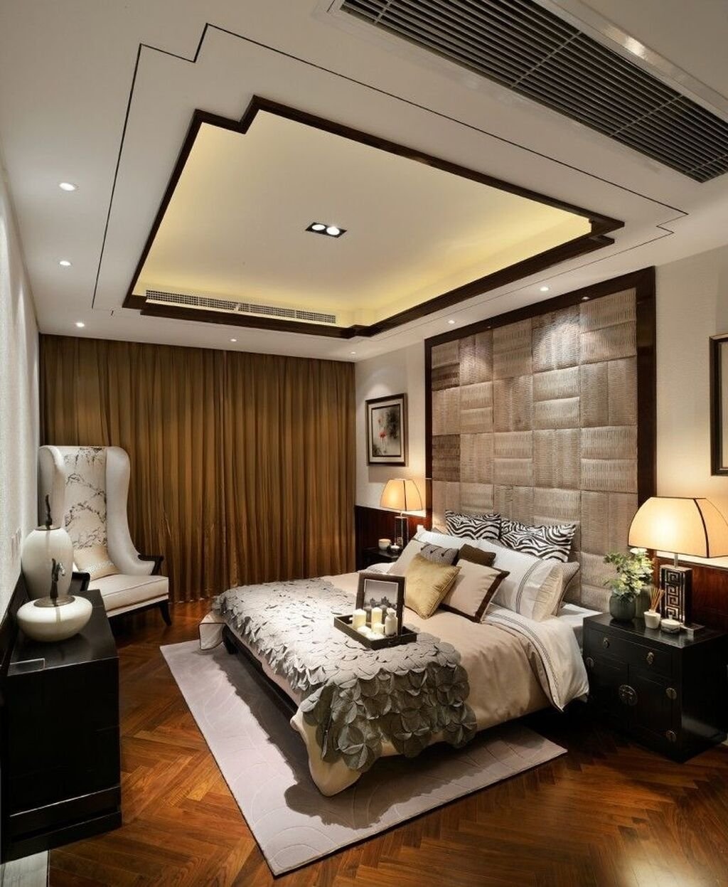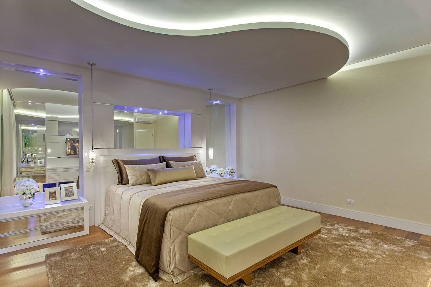 Подвесной потолок в спальне над кроватью