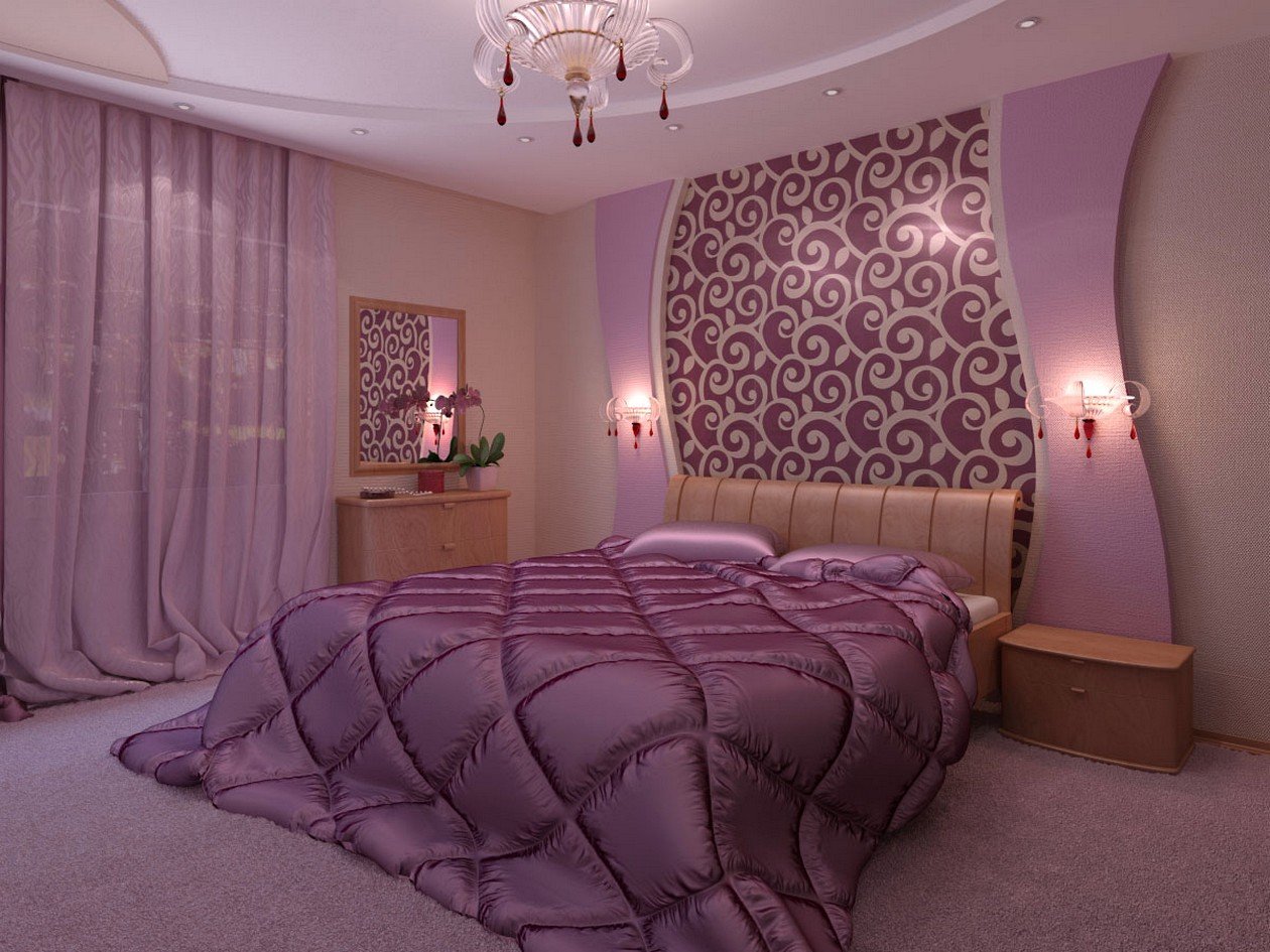 Сиреневый цвет в интерьере спальни