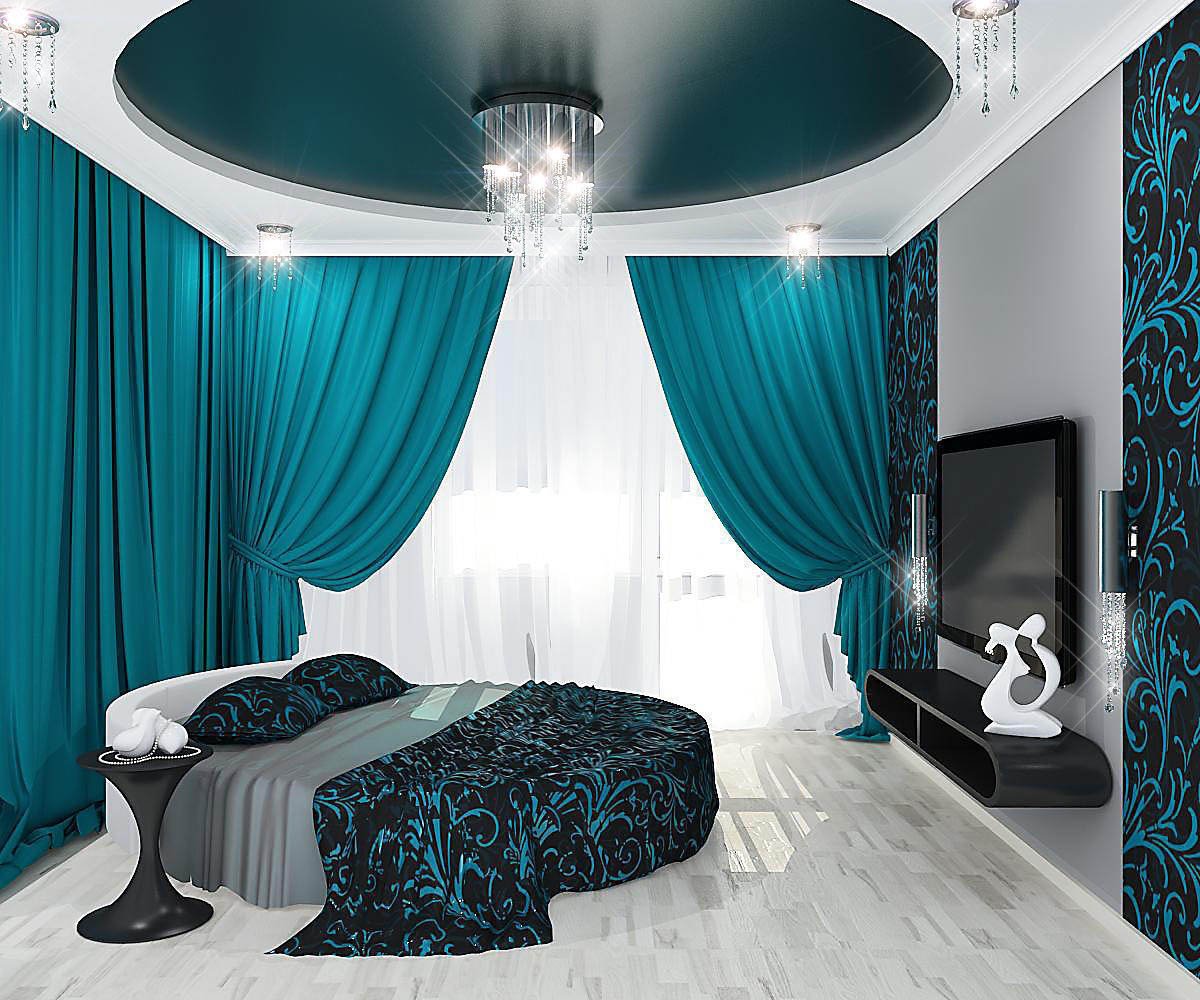 Черно бирюзовая спальня