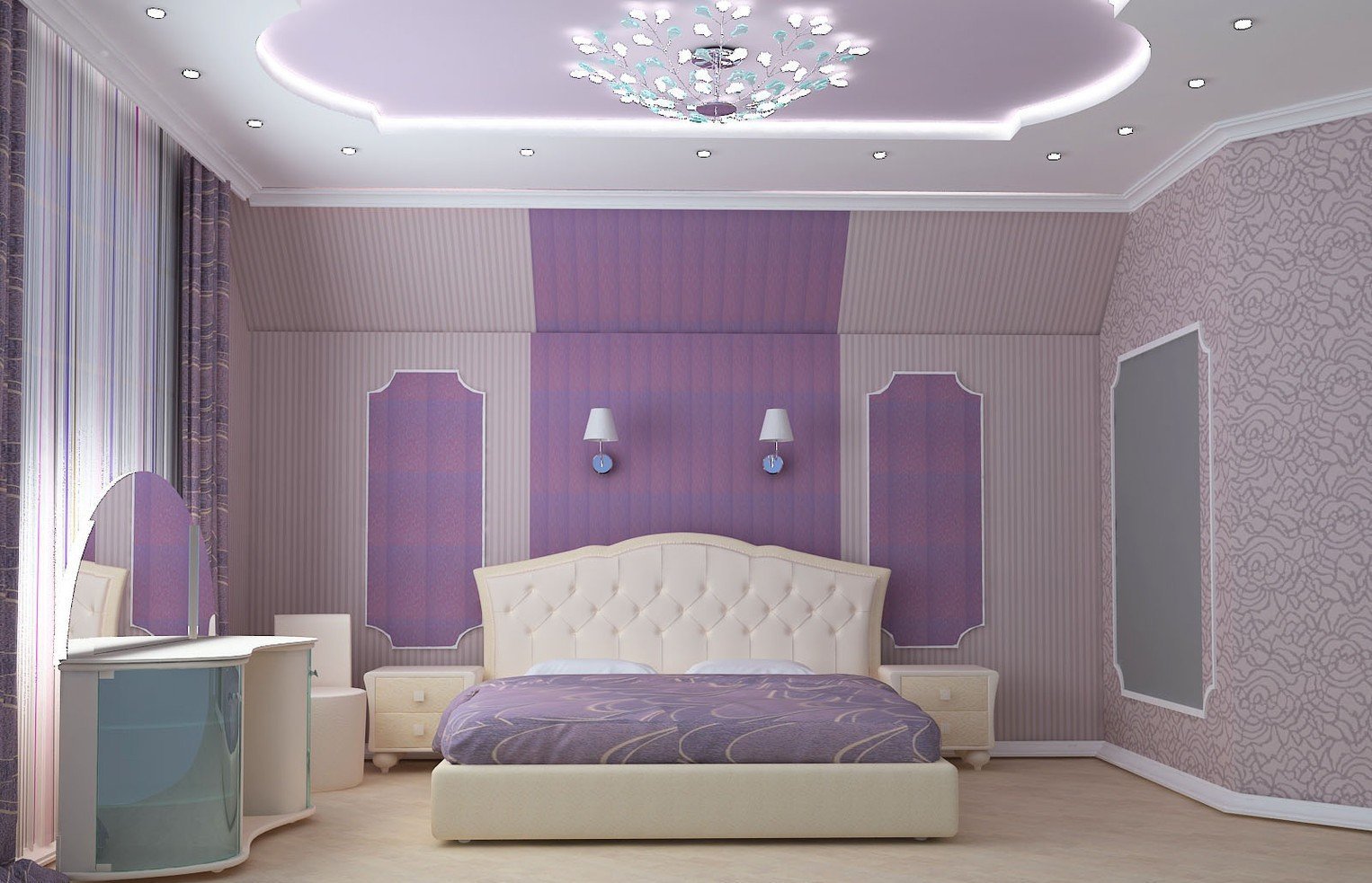 Потолки из гипсокартона для спальни