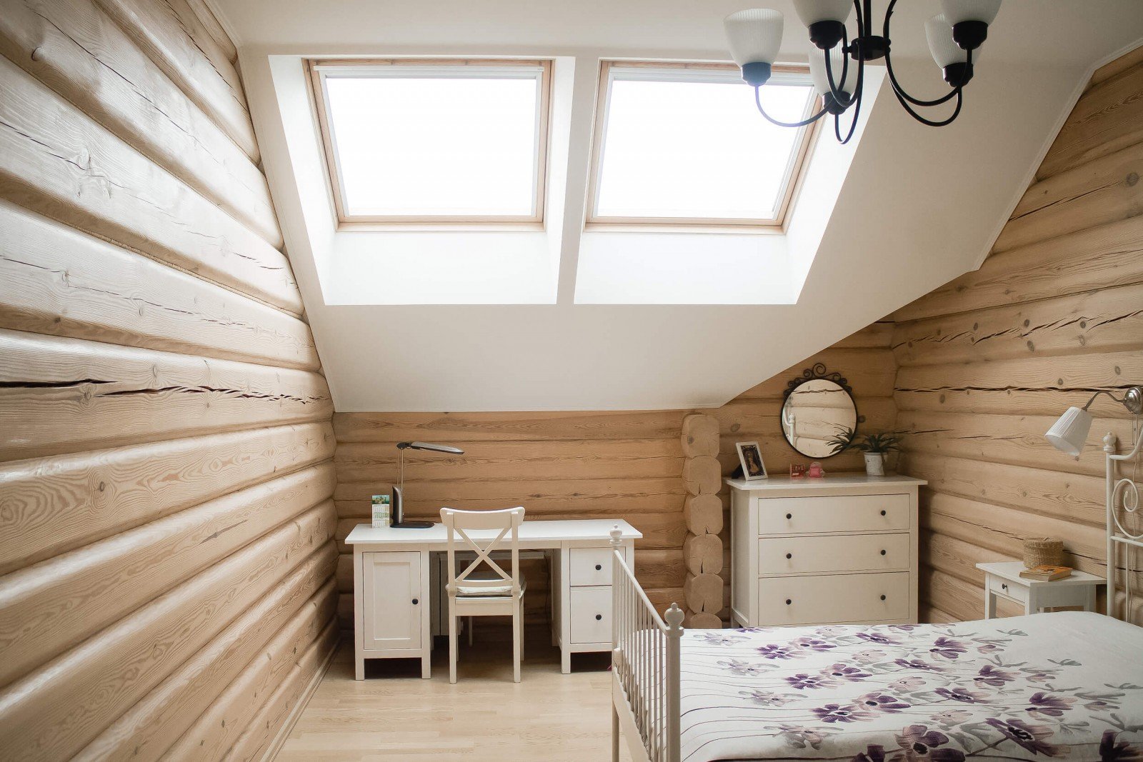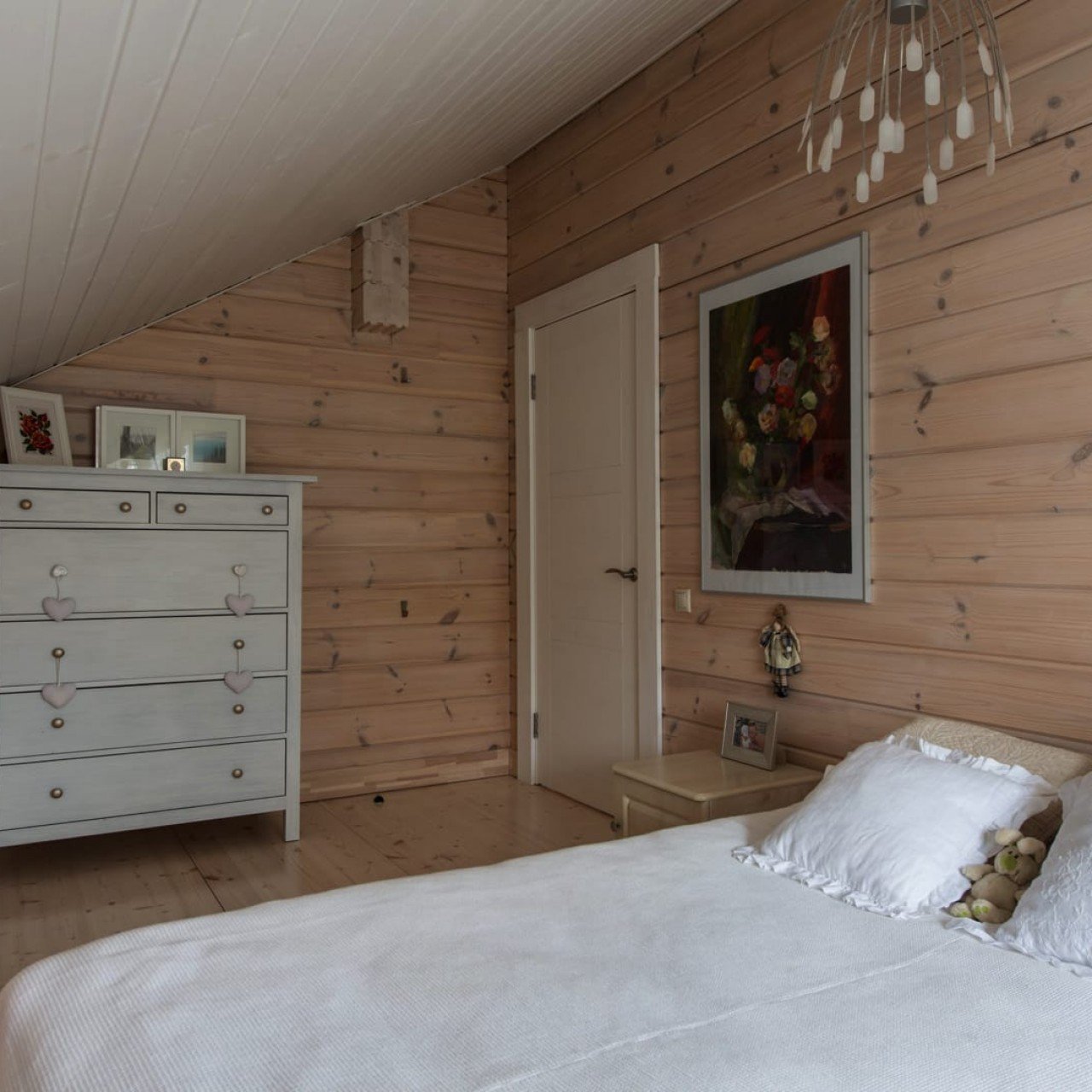 Белая спальня в деревянном доме