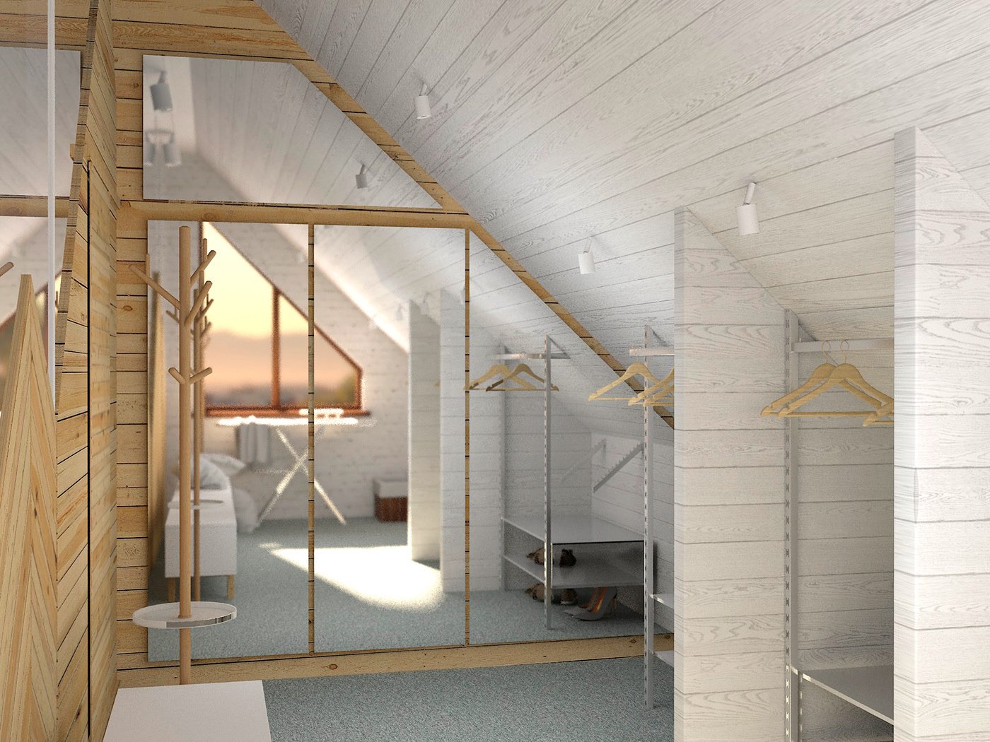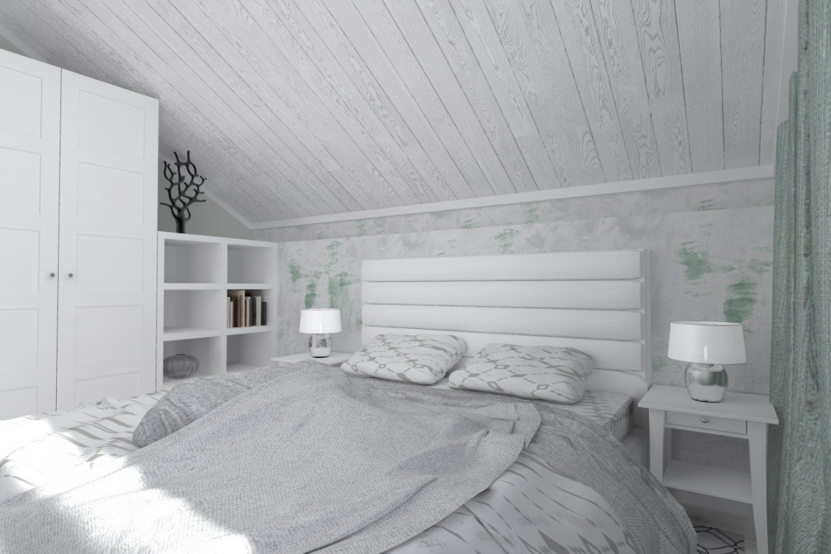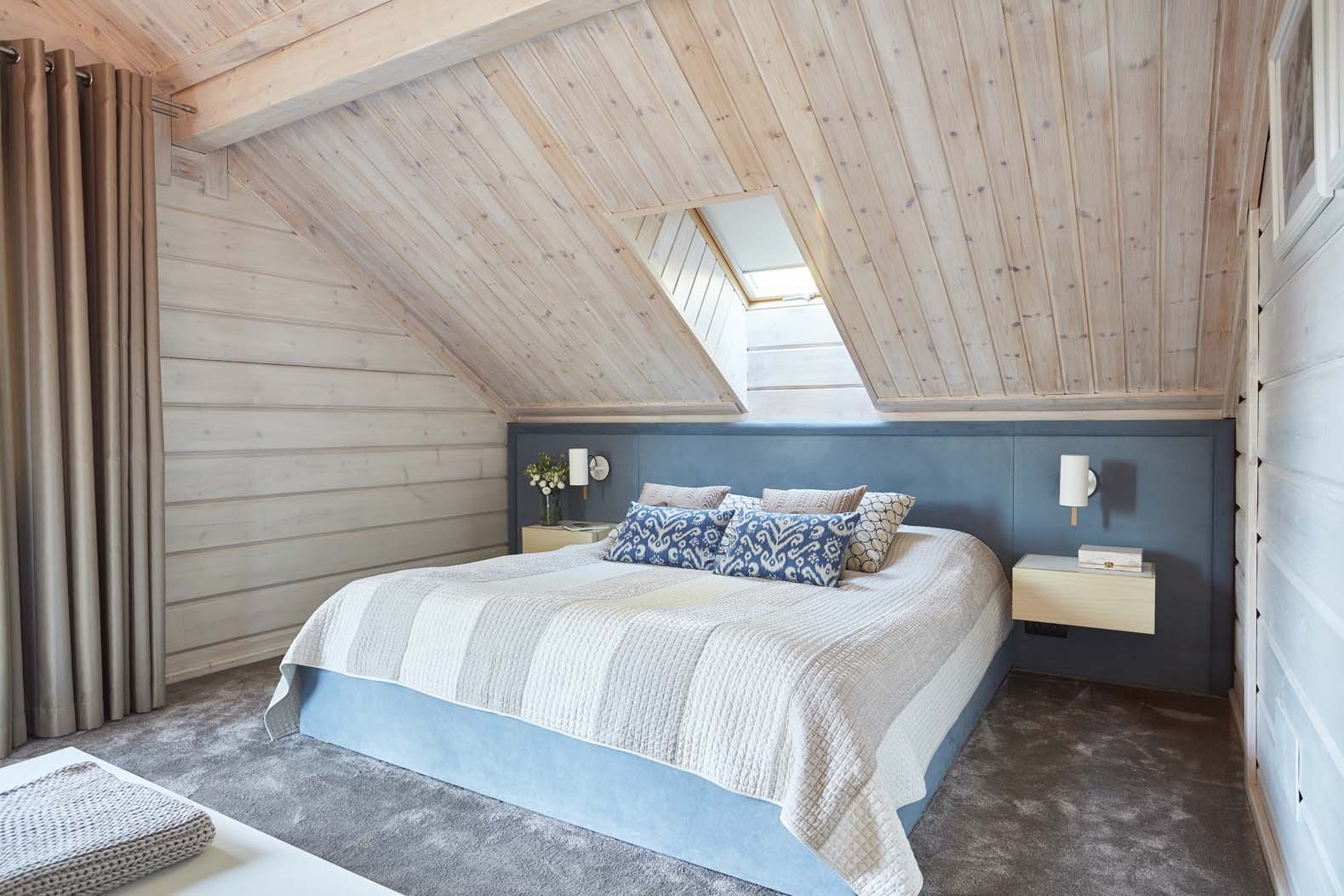 Спальня в скандинавском стиле на мансардном этаже