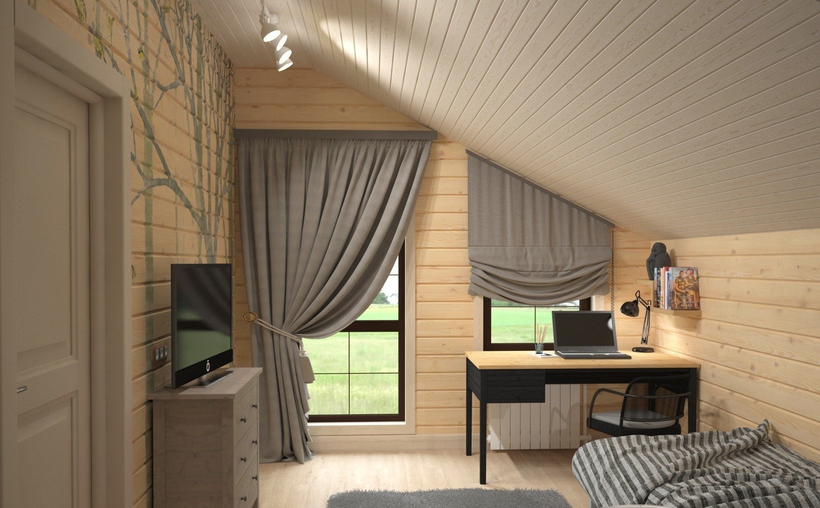 Мансардная комната имитация бруса