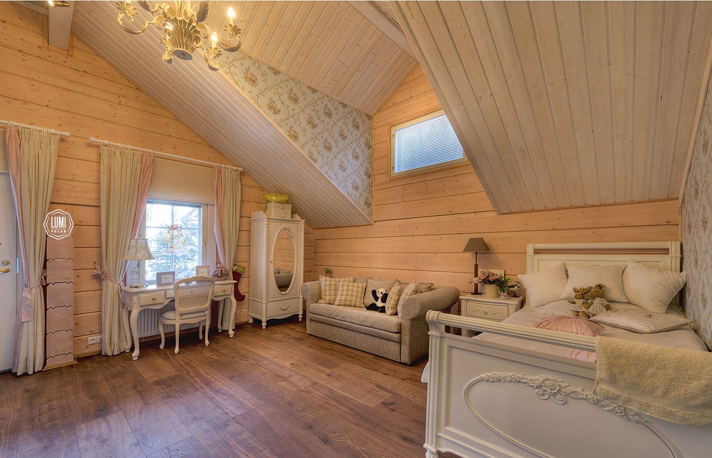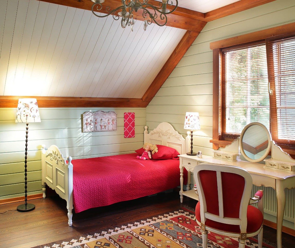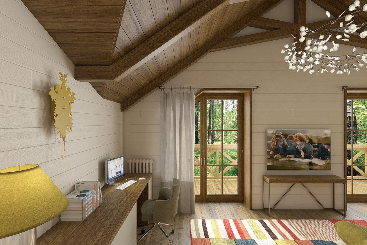 Имитация бруса в интерьере мансарды
