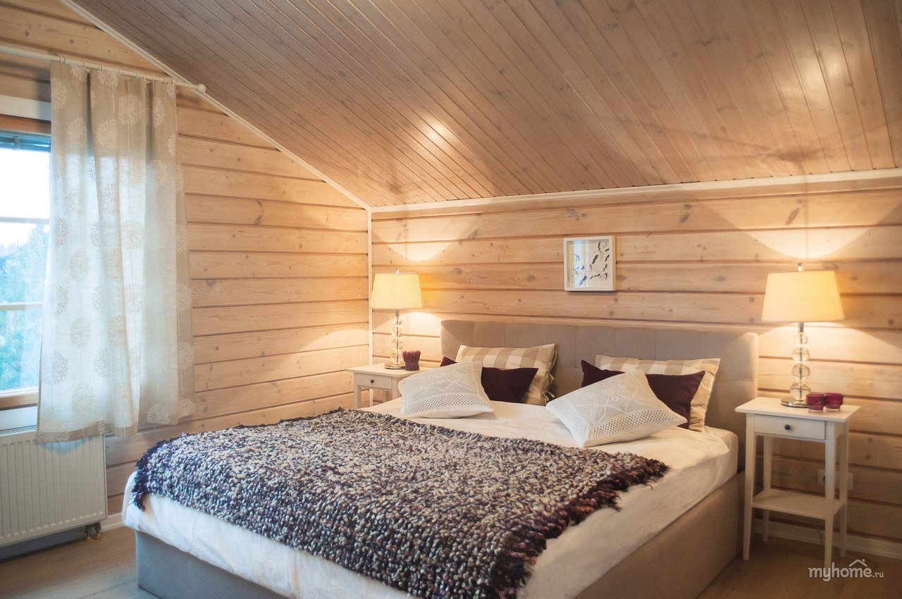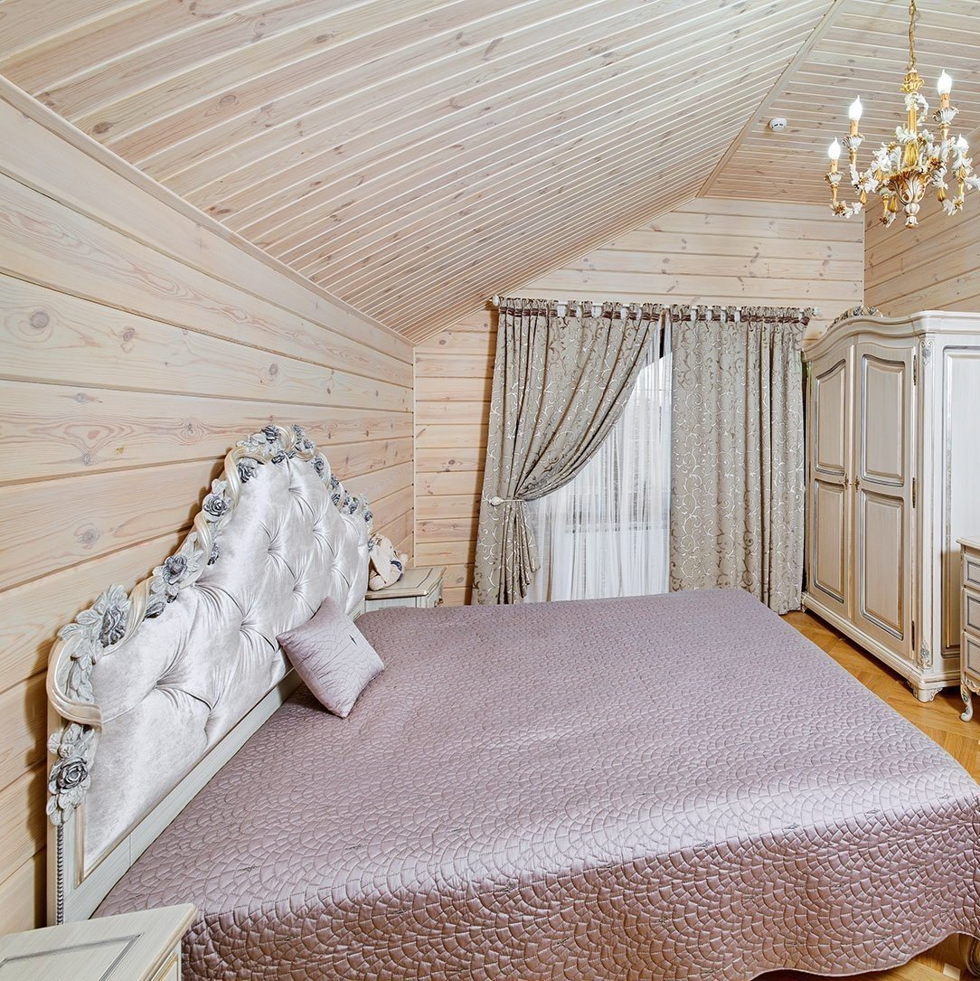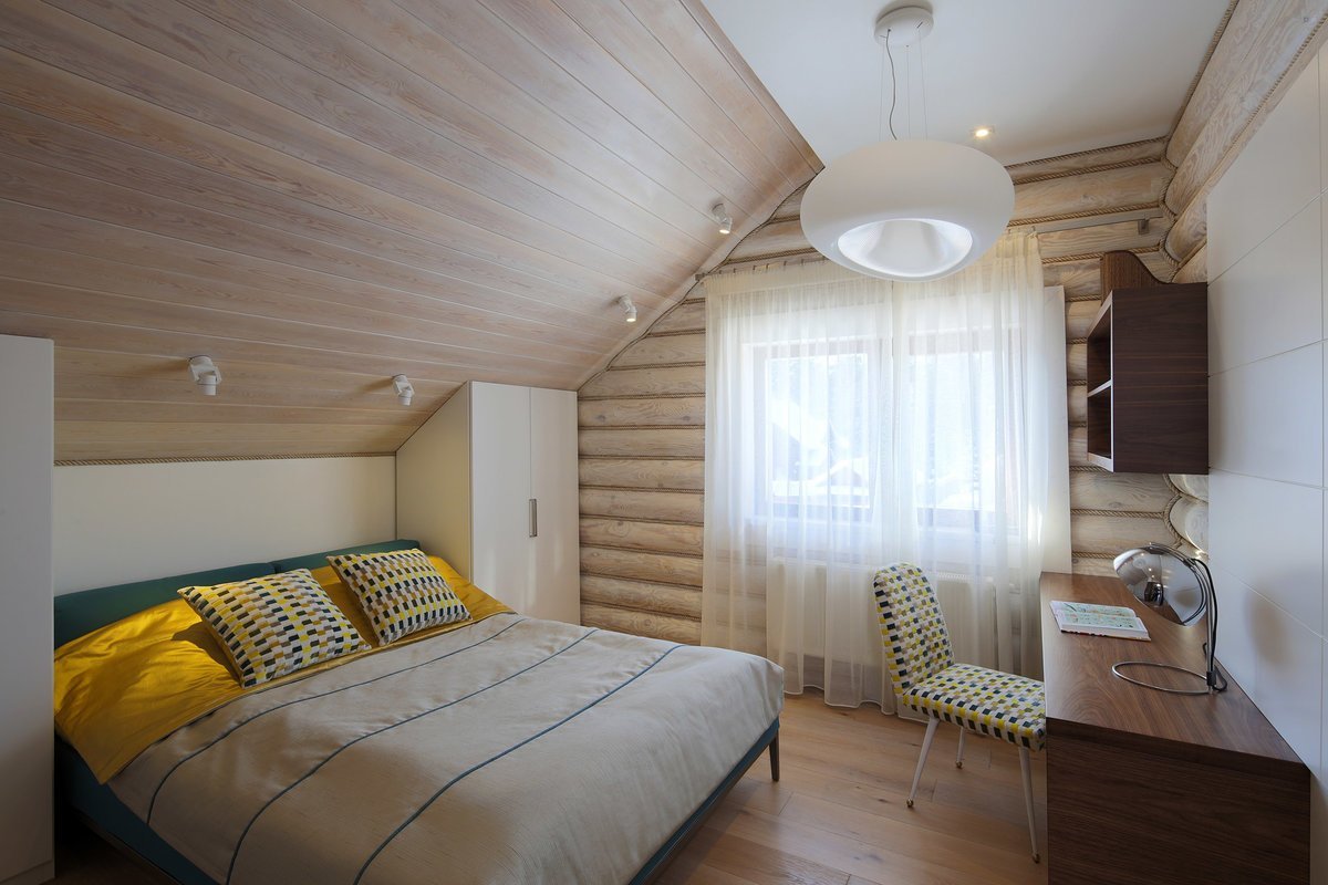 Спальня мансарда имитация бруса