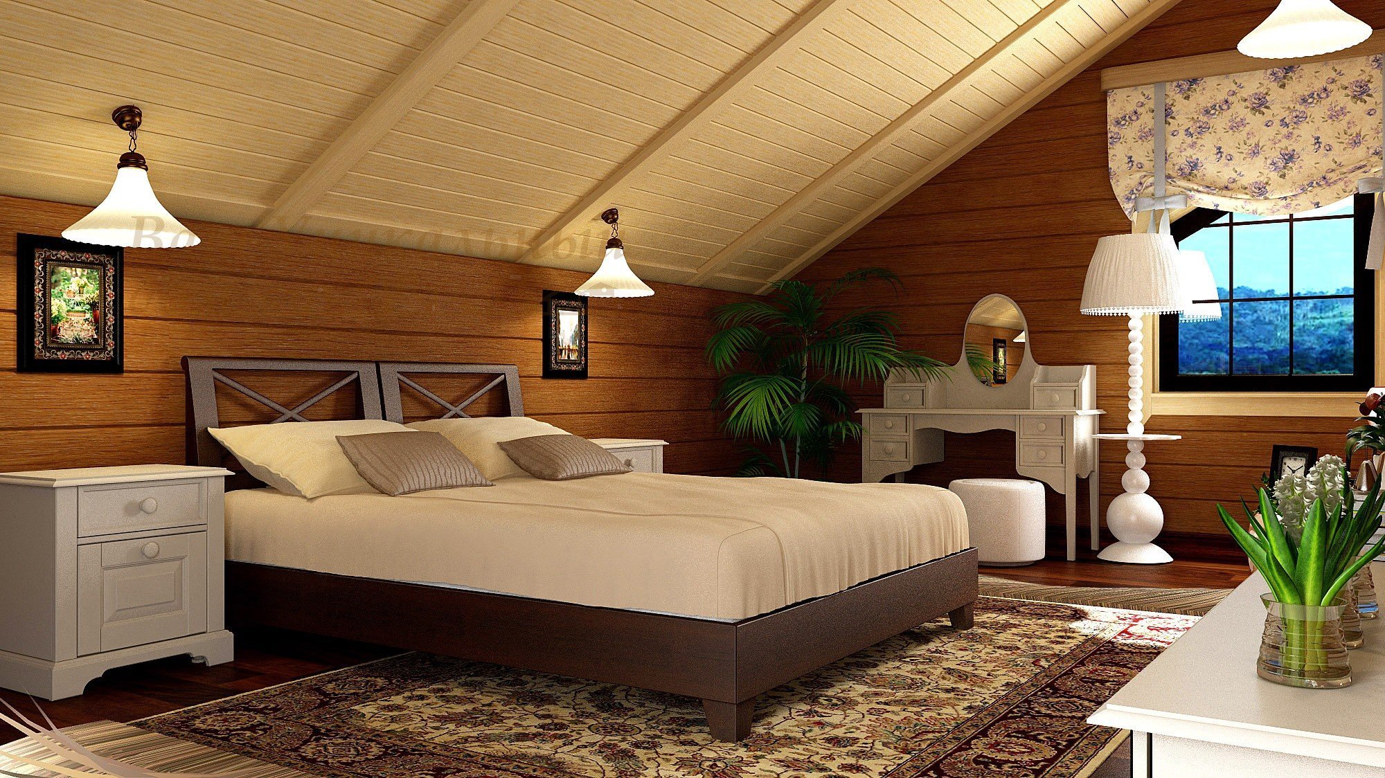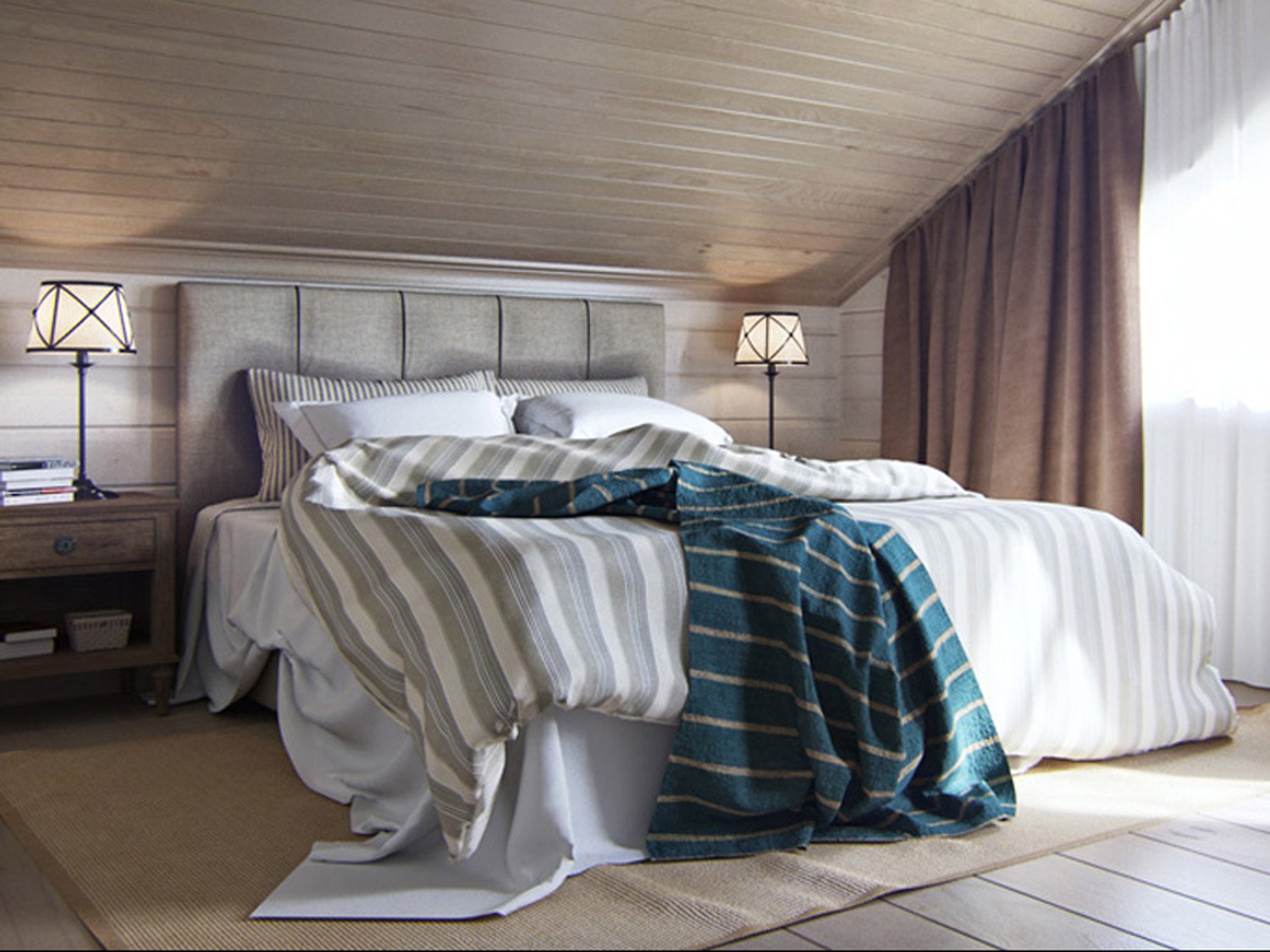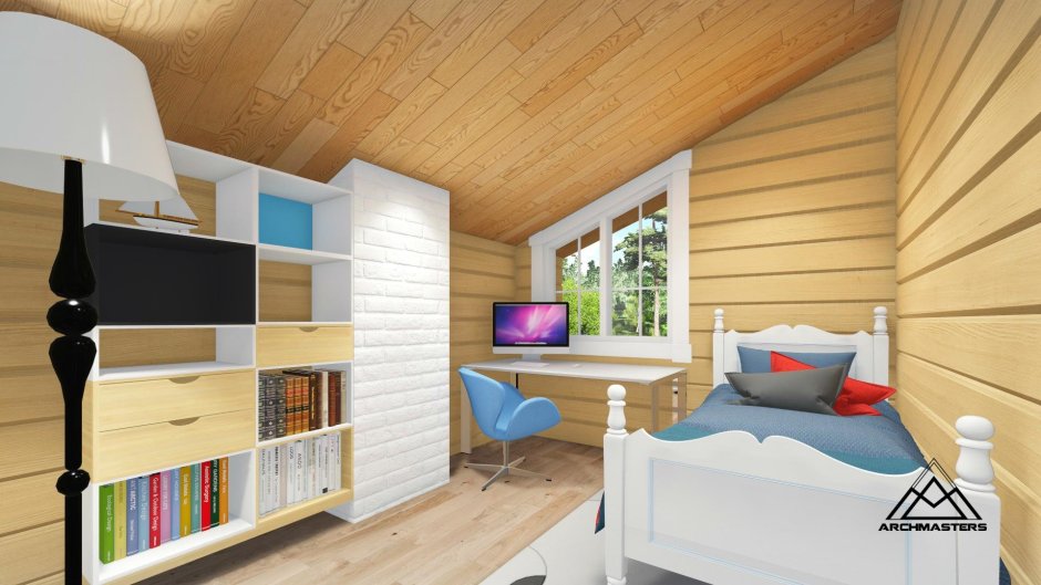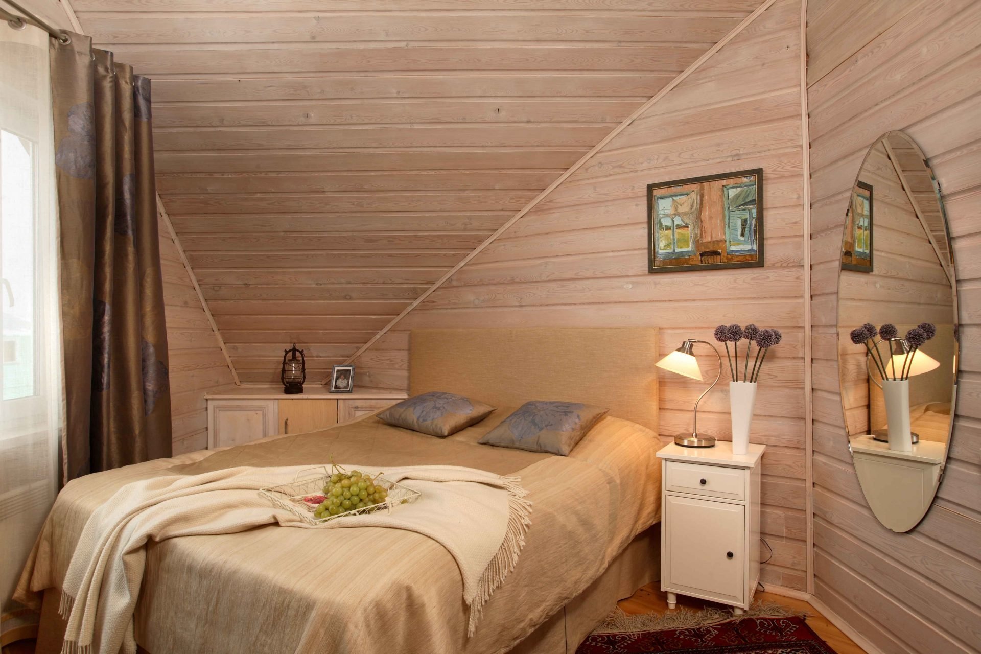 Спальня мансарда имитация бруса